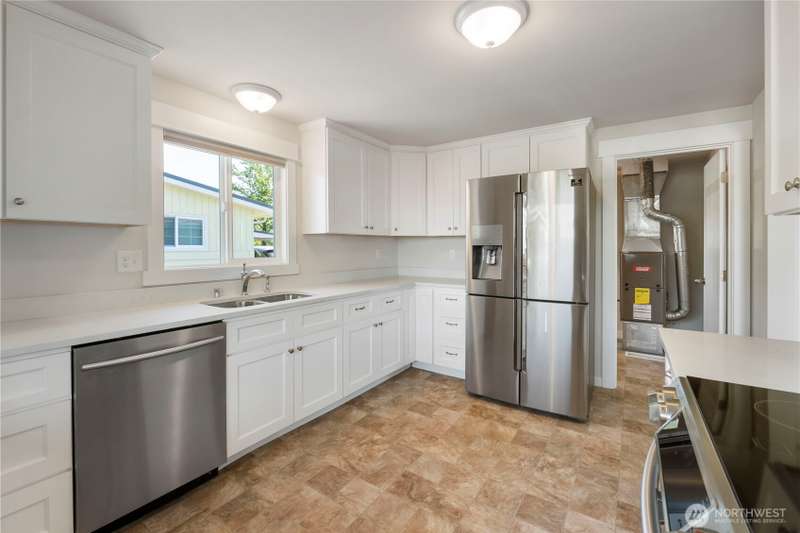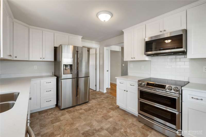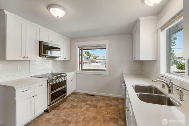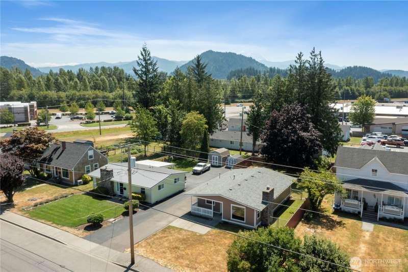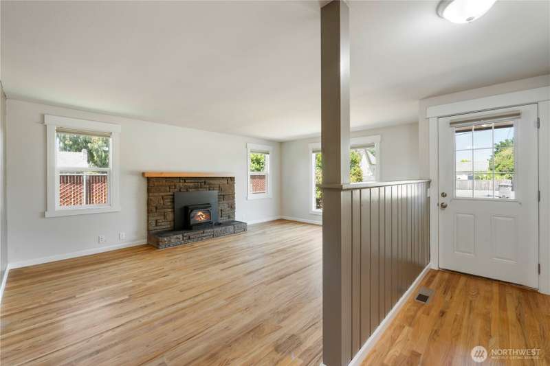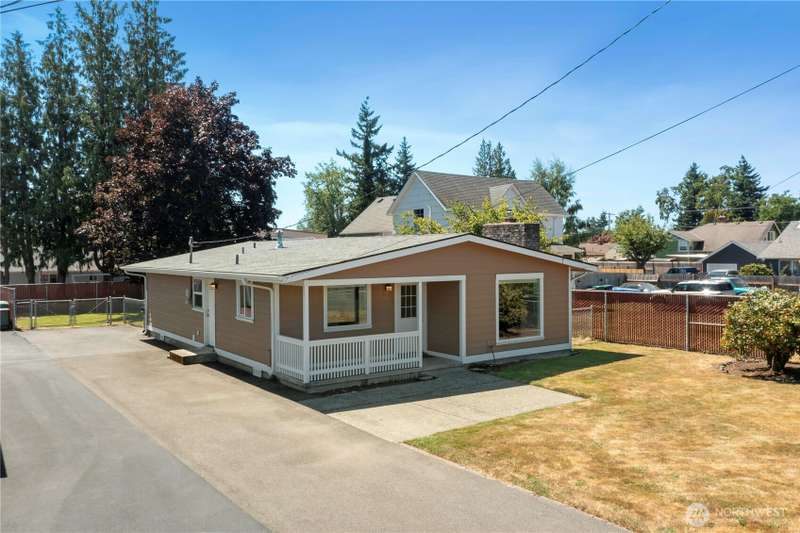 Welcome to your Enumclaw charmer just a block from downtown! This stylishly updated 3-bed, 1-bath rambler blends vintage charm with modern upgrades. Enjoy original hardwood floors, a cozy wood-burning fireplace with Wilkeson brick, spacious bedrooms (one with built-ins), and a large mudroom. Sun-filled kitchen features quartz counters, tile backsplash, full-height cabinetry, a flush-mount sink, and brand-new stainless appliances including a French door fridge, double oven/range, dishwasher, and microwave - all included! Full bath offers a stone-style countertop & tiled surround shower/tub. Framed Milgard windows, Hardiplank siding, fenced yard with dog run, and a big driveway with RV/trailer space. Turn-key with seller-procured inspection!