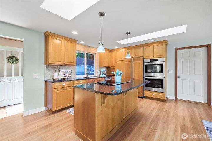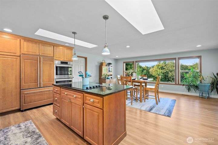 Imagine your personal retreat to your stunning Country Estate situated on 5 acres. Rare secluded 4-bedroom rambler awaits you. Fantastic Dream kitchen with Bosch Appliances and great room openness with lots of natural light! Great room leads to rustic Living space with stone fireplace/French doors to spacious patio. Primary suite on the main level offers privacy/luxury. Lower level you will discover a second ensuite and separate living space for MIL or guest suite with 2nd living room/fireplace and patio. Multi-generational living is possible. New flooring throughout tile, granite and travertine in baths and Kitchen. Barn/Shop has multiple uses/6 covered parking spaces, Chicken Coop/greenhouse/2 outbuildings/RV space. Hiking and 4-wheeling.