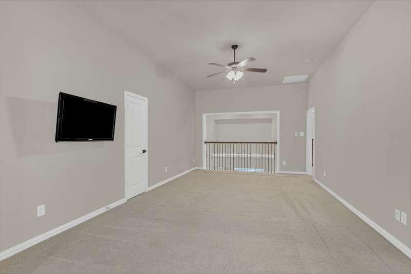 Bathed in natural light and full of charm, this breathtaking North-facing Highland Home is nestled in the prestigious Mustang Lakes communityone of DFWs most desirable neighborhoods. Perfectly positioned on a beautifully landscaped lot, this one-owner home offers stunning curb appeal, luxury upgrades, and a thoughtful floor plan designed for todays lifestyle. Inside, discover 4 spacious bedrooms, 3.5 baths, and a 3-car tandem garageideal for parking a golf cart, collector car, or creating a workshop. Elegant wood flooring, architectural details, and smart home features enhance the homes modern style and functionality. The layout is designed for flexibility: First floor: A grand living area with soaring ceilings, formal dining room, and private home office with hardwood floors. The oversized owners suite is a true retreat with spa-like amenities, dual vanities, a huge walk-in shower, and an irresistible closet with abundant storage. A downstairs media room sets the stage for movie nights, while a secondary en-suite bedroom with full bath is perfect for guests or multi-generational living. Upstairs: A spacious game room with a large walk-in closet that can easily be converted into an additional full bathroom, plus two additional bedrooms with a Jack-and-Jill bath. A flex space at the end of the game room provides the perfect spot for homework, crafts, or play. The chefs kitchen is an entertainers dreamfeaturing a 6-burner gas cooktop with professional vent hood, double ovens, two-toned granite countertops, stainless steel appliances, white cabinetry, and a massive island that opens seamlessly to the breakfast nook (with built-in seating and storage), dining, and living areas. A laundry room with sink, drip-dry area, and cabinets adds everyday convenience. Step outside to enjoy the large grassy backyard, ready for your dream outdoor living space, pool, or garden retreat. An extended covered patio makes entertaining easy.