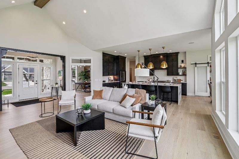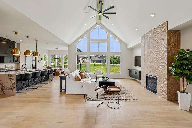 This beautifully crafted new ranch by Victory Homes of WI offers all you need--and more in a downsized dream home. Designed for comfort and style, it features a spacious open layout, private owner's suite with spa-inspired bath, oversized tile shower, soaking tub, and custom walk-in closet. The chef's kitchen is impressive with a large island, high-end appliances, and a walk-in pantry complete with sink and beverage fridge. Warm wood floors, flush-mount fireplace, and natural light throughout add charm. The finished LL offers a designer bar, game area, sports zone, fitness room, 4th bedroom & bath. Manageable yard for low-maintenance living!