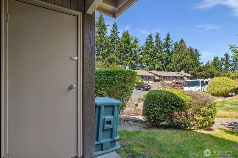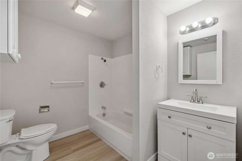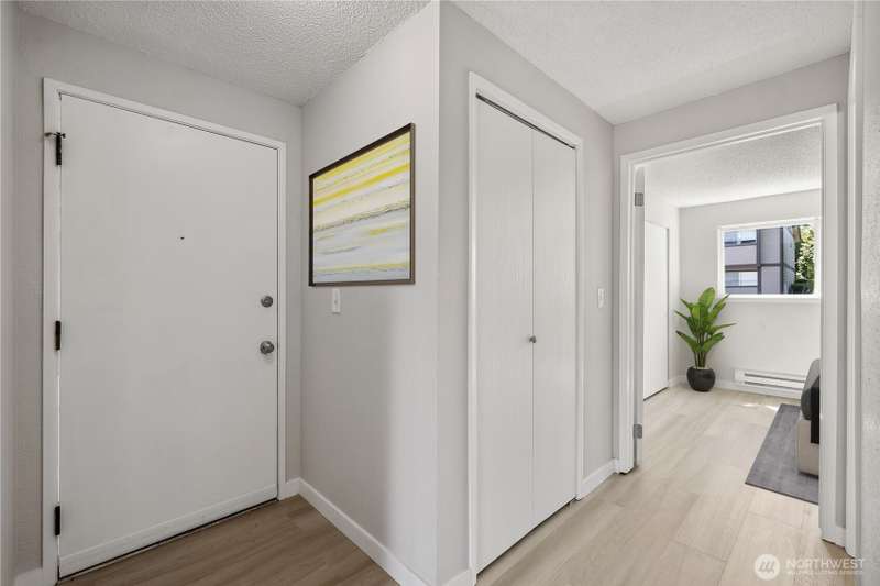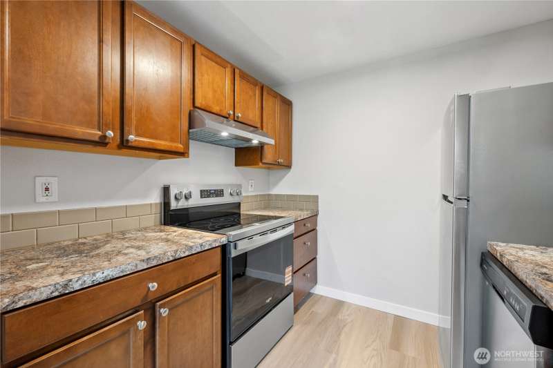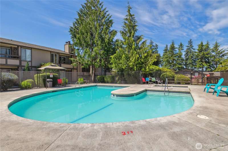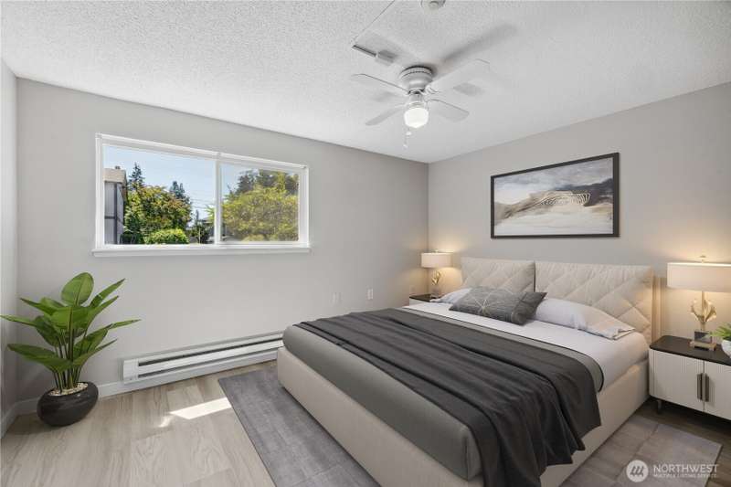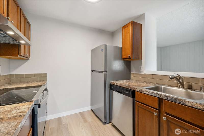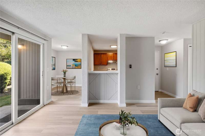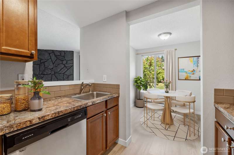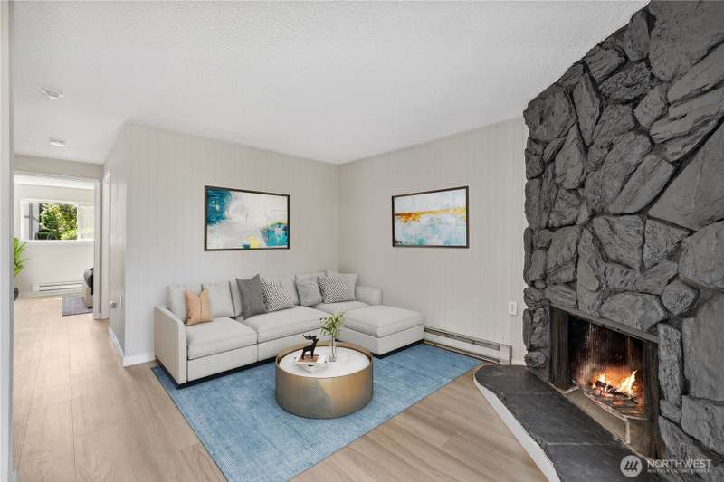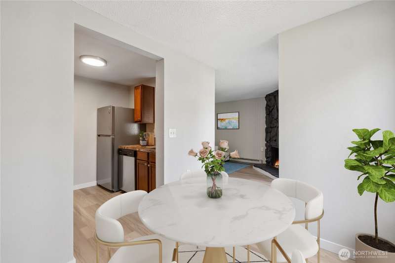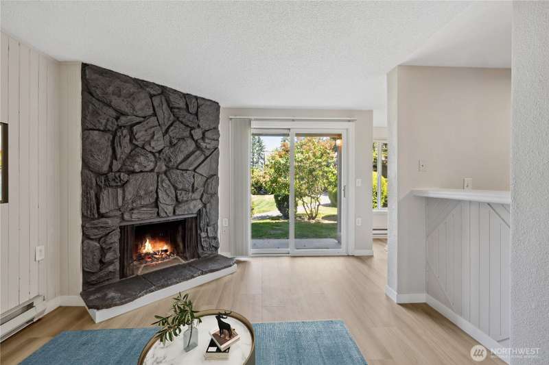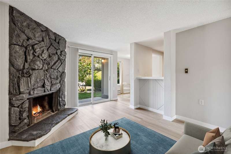 Welcome to Newcourt Condominiums! This beautifully updated ground-floor unit is perfectly situated with its own assigned parking spot right out front. Inside, you'll find a spacious 1-bedroom layout featuring fresh paint throughout, all new vinyl flooring, and a cozy wood-burning fireplace in the living room. The kitchen has been refreshed with new appliances and lighting. Remodeled bathroom with new toilet and vanity. Step outside to your private patio with extra storage. Community amenities include a pool, tennis court, and play area. Conveniently located near shopping, restaurants, parks, and bus lines. Water/sewer/garbage covered by dues. Close to link rail station. No rental cap, ideal for investors or owner-occupants alike!