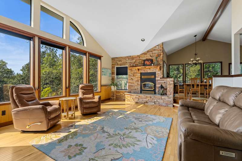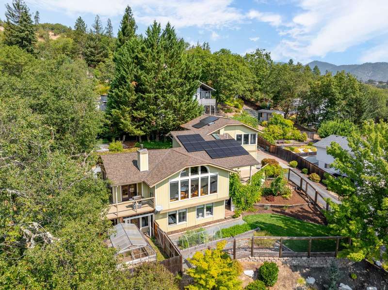 Warm and inviting, this 3-bedroom, 2 1/2-bath sits on a .39-acre cul-de-sac lot with incredible views and a sense of privacy. Nearly 2,700 sq. ft. of living space features hardwood floors and an open floor plan that maximizes natural light and creates seamless flow. Expansive windows on the first level make every room bright and welcoming. A separate bonus room provides flexibility for an office, studio or a possible bedroom. Step outside to a spacious deck with a tranquil tree canopy, plus a built-in pool and hot tub for relaxing or entertaining. A separate room off of the main house offers flexible use as an office or studio or a possible bedroom. Enjoy a garden area and greenhouse for year-round gardening. Wildlife sightings of deer, turkeys, and hummingbirds add charm. Upgrades include solar panels and a whole house backup generator for energy savings and peace of mind.