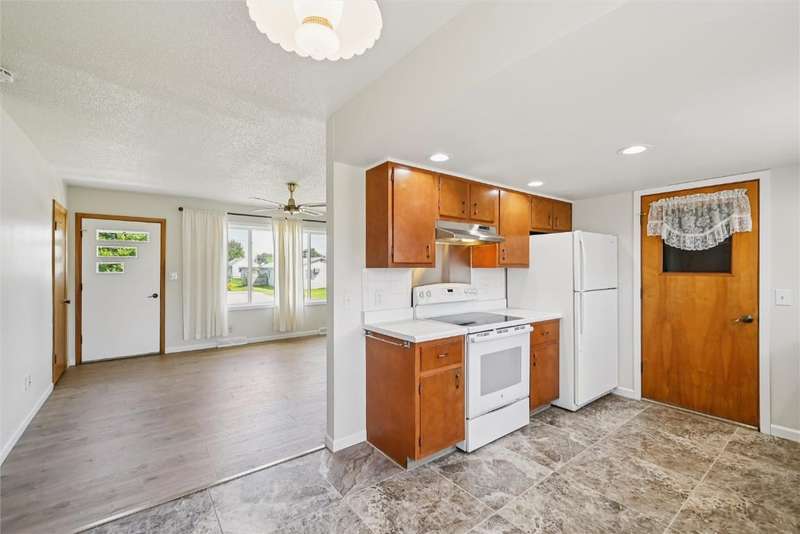 Such a great home waiting for its new owner! Enjoy this 3 bedroom, 1 bathroom main level living ranch home just a couple blocks from Tilford Elementary School! New flooring throughout, all fresh paint, metal roof just a couple of years old, vinyl siding also just a couple years old, updated vinyl windows, so much to enjoy! Nice level yard, extra deep attached garage, main floor laundry, all appliances are included PLUS the seller is offering a one-year home warranty to a buyer! Nice floor plan, check out this one today before its too late!