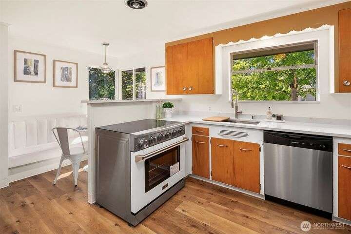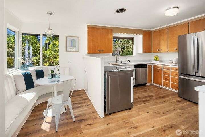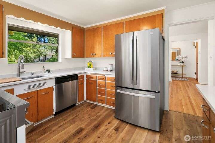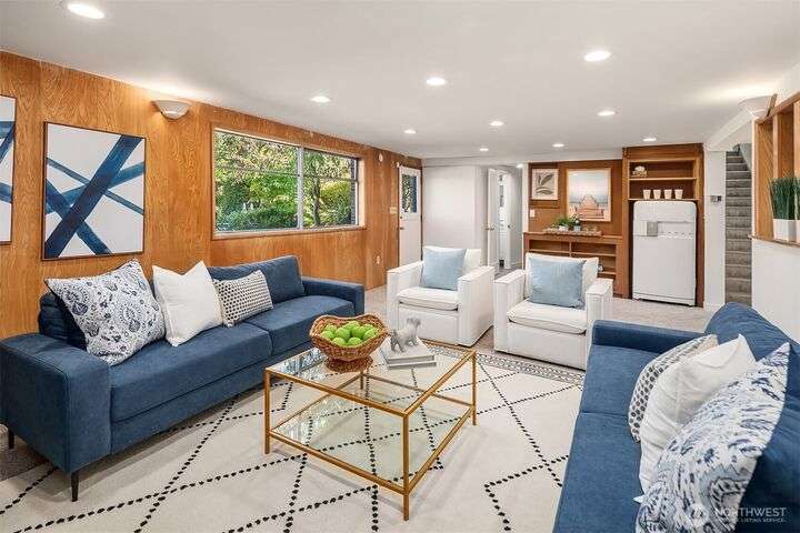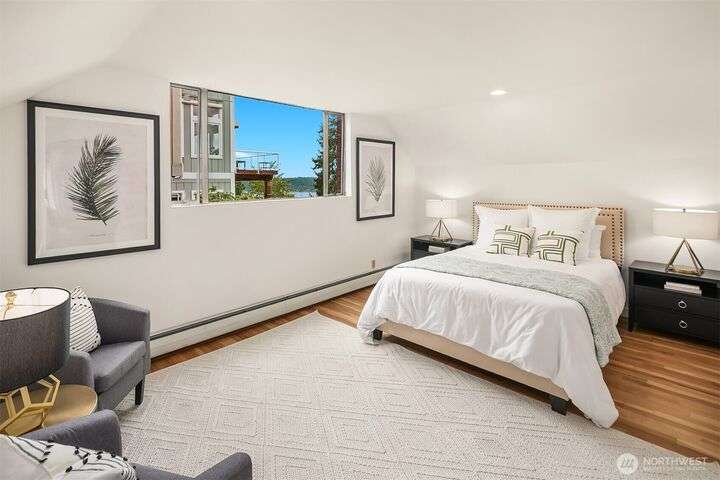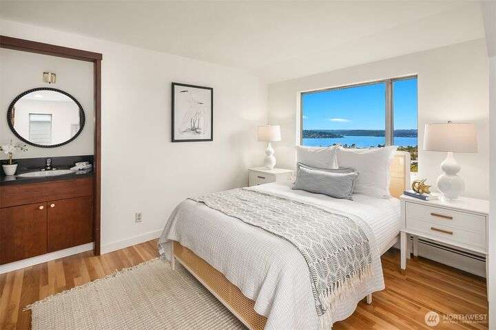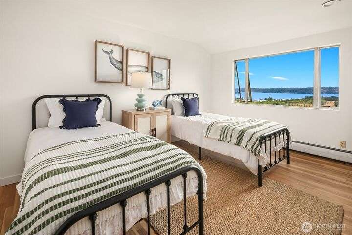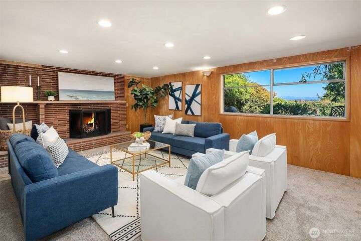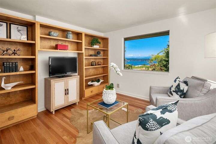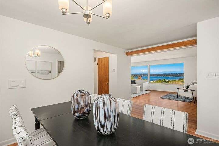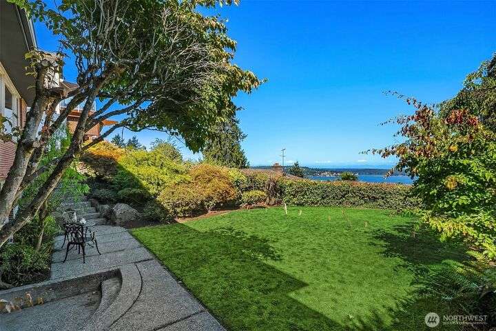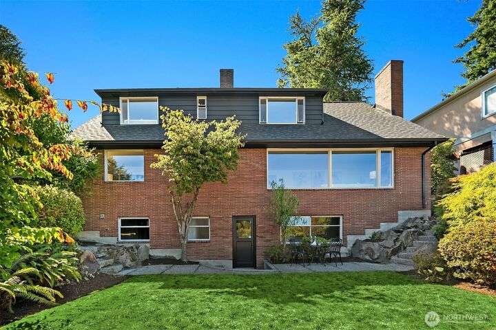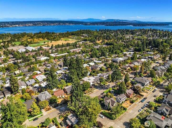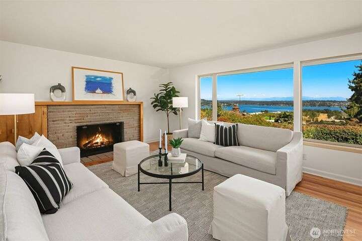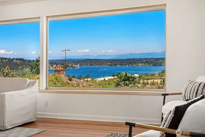 A rare jewel—first time offered since this home was constructed in 1951. Built with enduring quality and thoughtful updates, this timeless residence showcases gleaming hardwood floors, beautifully updated kitchen and bathrooms, and sweeping lake & mountain views through expansive windows. Three bedrooms upstairs plus a flexible family room/4th bedroom on the main. The daylight lower level rec room opens to the patio and lush yard (lower level opportunity to finish out spaces for two more additional bedrooms). Rare two car garage. Coveted location near top schools, golf, parks, and Lake Washington. Adjacent lower lot included for an extraordinary legacy estate opportunity, large yard and view security.