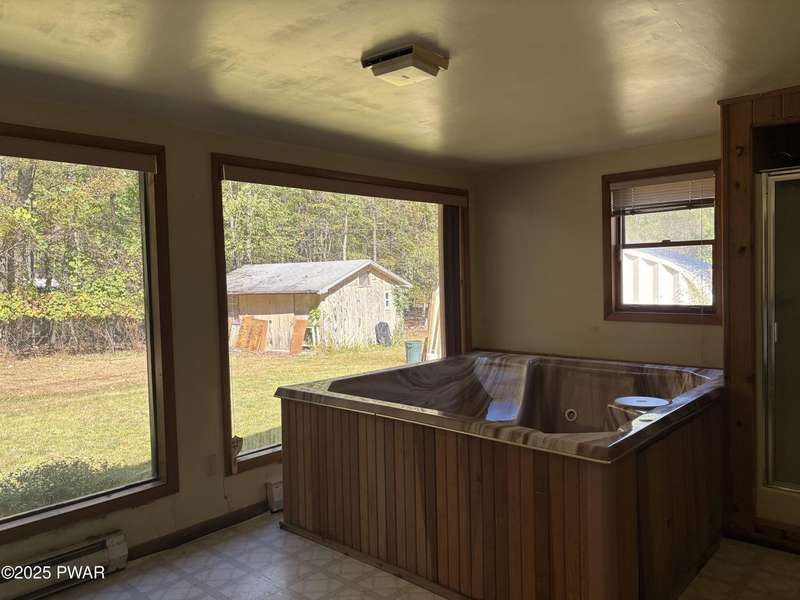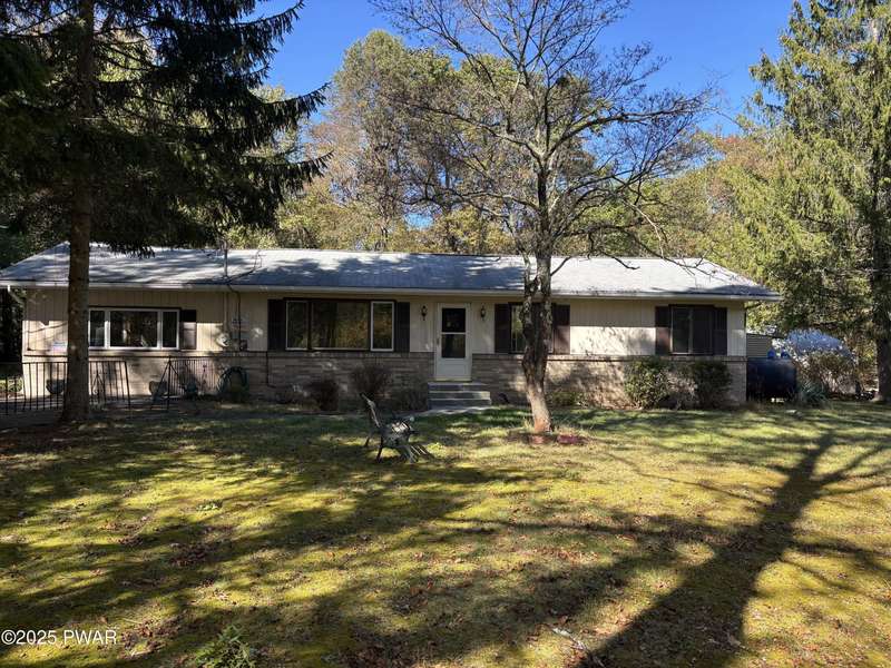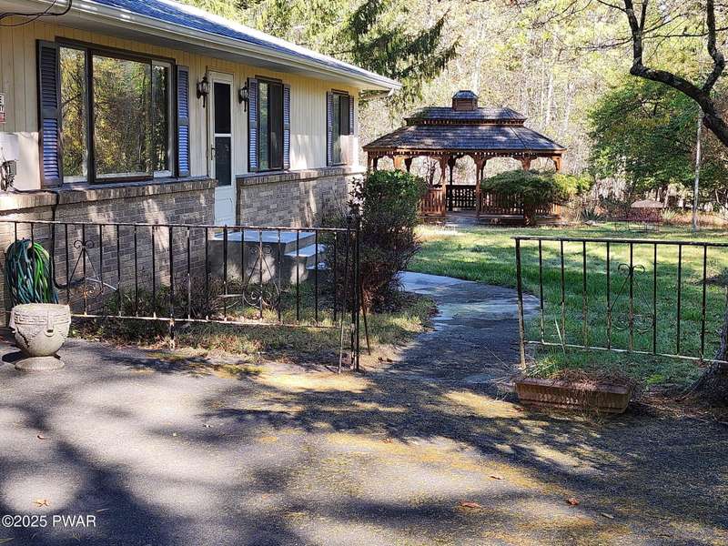 Stunning . 92 acre corner lot in highly sought after Tannersville location! Rural, country vibe yet seconds to Weis Grocery store, CVS, Nail Salon, Amicis Pizzeria and many other shops in town! Spacious Ranch home minutes from Camelback Resort, Great Wolf Lodge, and Kalahari! 3 first floor Bedrooms with an additional Bedroom in the 1056 sq ft partially finished basement. Beautiful Gazebo, oversized Carport, two sheds, and 750 sq ft metal frame Work Barn! Bring your ideas and creativity! This home is going to be fun to add your own style!! Enclosed patio with Jacuzzi Spa to host gatherings for family and friends! Unbeatable location!!