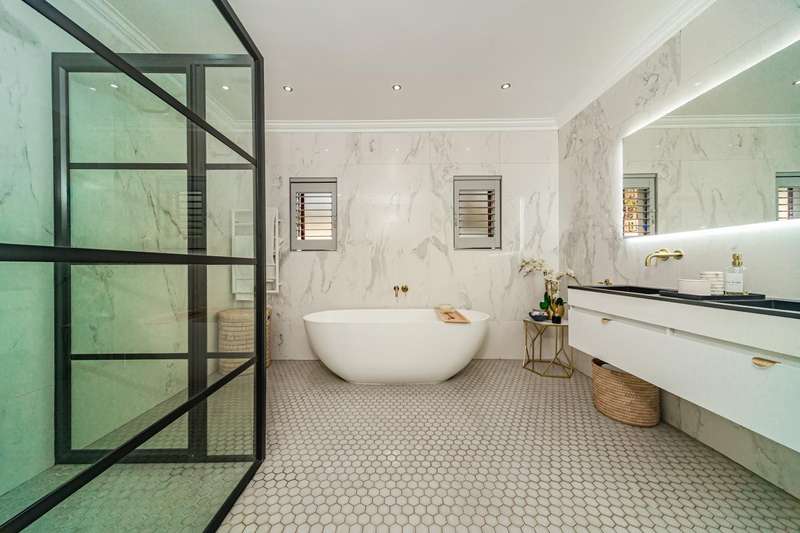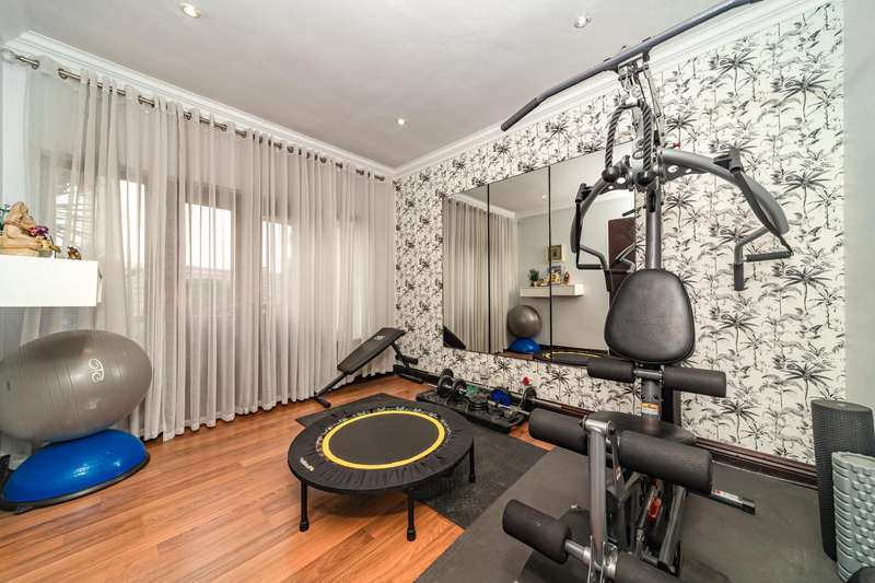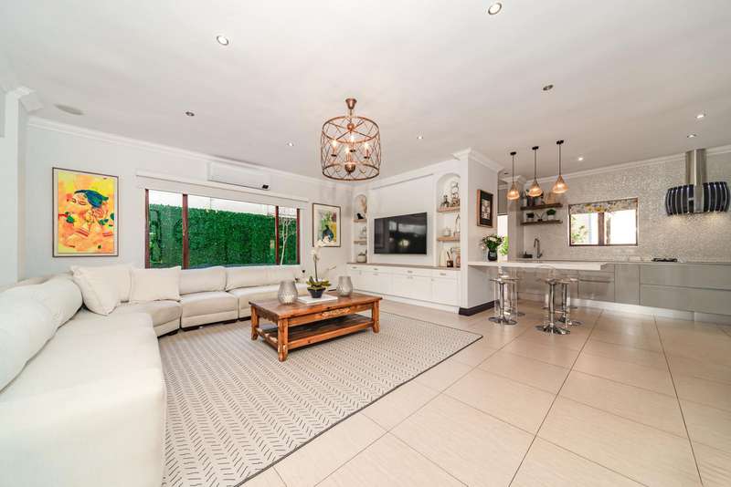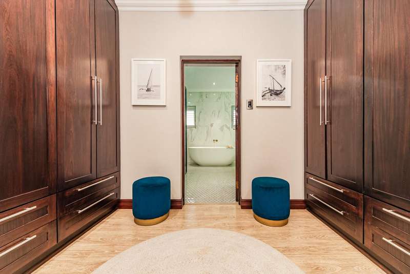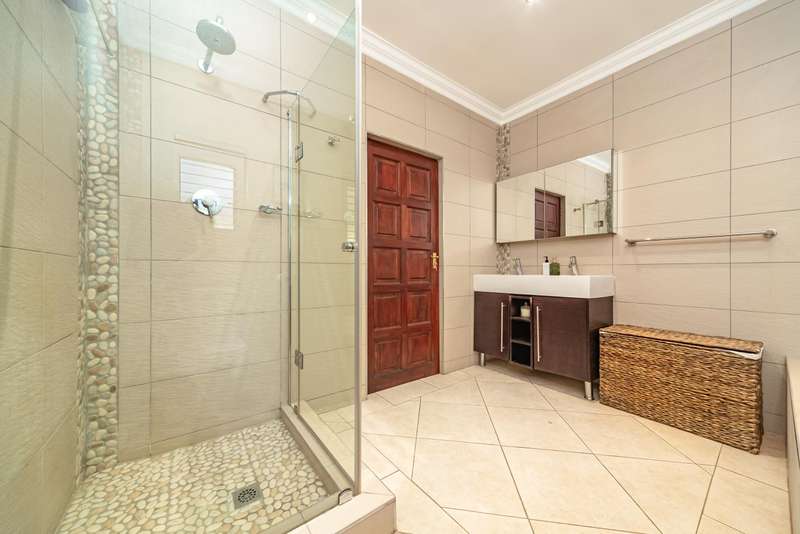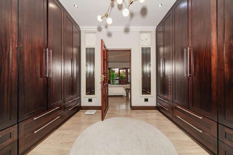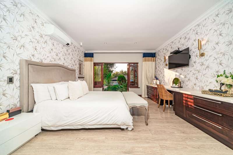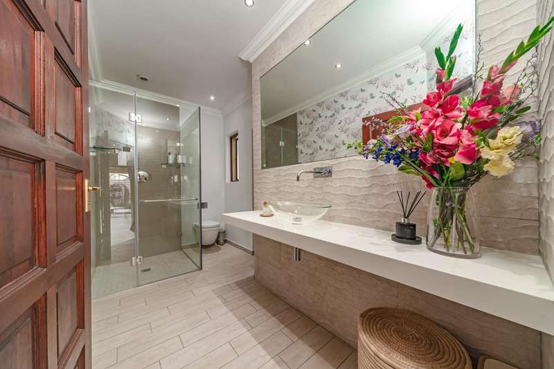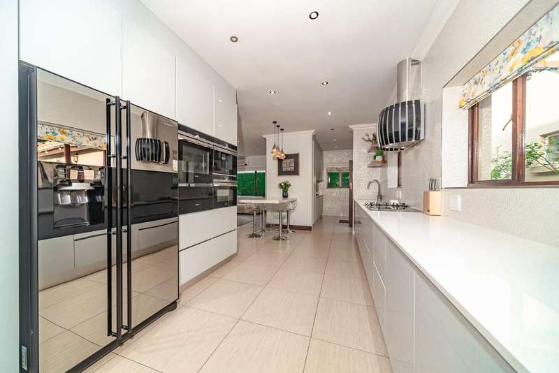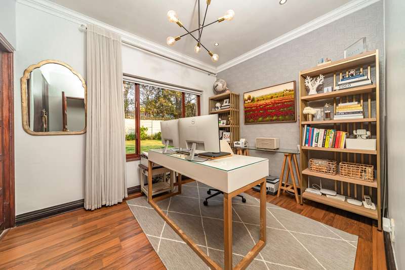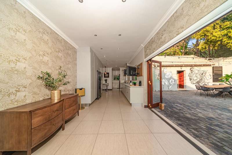 Welcome to a beautifully renovated family residence where timeless charm meets modern convenience. Spanning an impressive 375sqm under roof, this four-bedroom, three-bathroom home has been meticulously maintained by the same family for over 20 years and is now offered in pristine condition. The interiors flow seamlessly from the sleek designer kitchen, equipped with premium finishes, into multiple living spaces including a stylish lounge, an elegant dining room, and an inviting entertainment lounge with a statement wine-rack feature and bar. Enhancing the atmosphere are two fireplaces?Çöone gas and one wood-burning?Çöthat create warmth and character, while security shutters on all bedroom doors offer peace of mind without compromising style. Outdoors, the property is designed for a lifestyle of leisure and celebration. A covered entertainment terrace overlooks the sparkling swimming pool, perfect for alfresco dining and summer gatherings, while the landscaped gardens are complemented by a borehole and a robust solar system for sustainable living. Additional features include double garages, a single carport, and staff accommodation, making this home as functional as it is luxurious. Every detail?Çöfrom the sparkling poolside retreat to the refined interiors?Çöhas been crafted to deliver the ultimate in family living, entertainment, and long-term comfort.