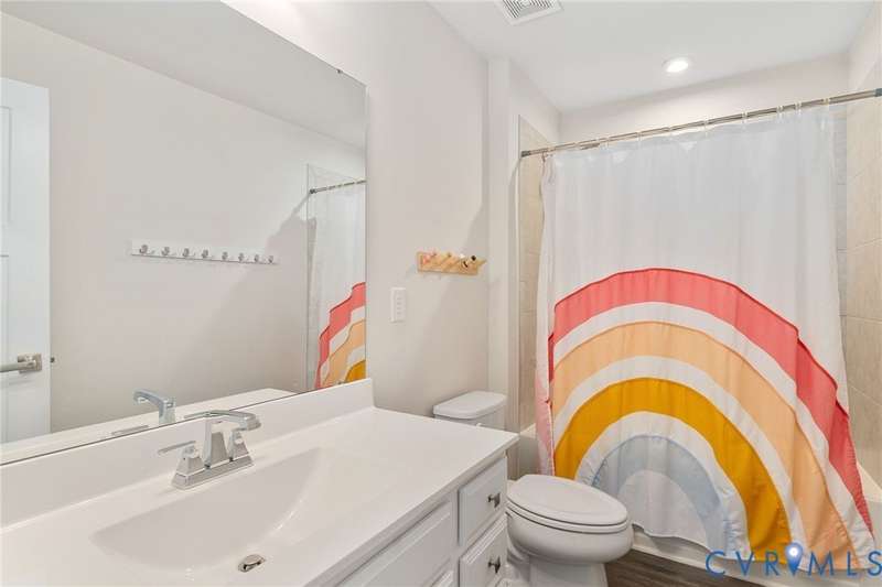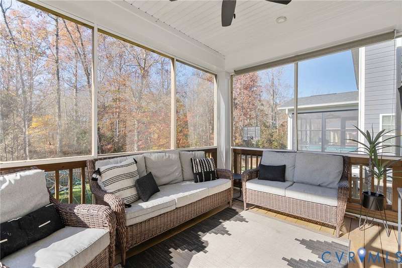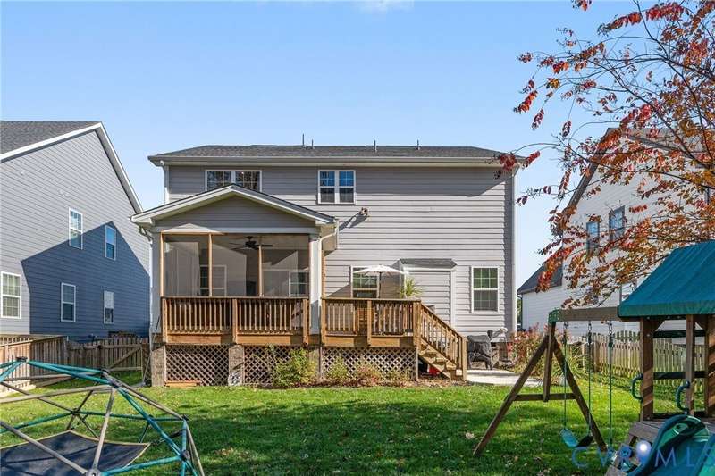 This is the home you have been waiting for in stunning Giles Farm Community, conveniently located in the Atlee Area across from Atlee High School! This Custom designed home has a wonderful private position within the neighborhood backing up to woods with a fenced rear yard. With in walking distance of the community pool, club house and Giles Farm pond will be an added connivence and an enjoyment to your family. The BEST location in Giles Farm! Designer details have been added to this Columbia model by the present owners-fireplace with designer wood detail and marble surround, wall detail in the foyer and dining area add elegant features to this home. They finished the covered deck into a screened in porch, added a deck and a patio for grilling. This home has a flexible floor plan with a front living area that can service as a home office or formal living room-you will love the finished hideaway under the steps! The family room is open to the Chef's kitchen with a 10' Island, Gas cooking, quartz countertops, pantry and loads of cabinets and storage. Half Bath, drop zone and door to garage complete the first level. Upstairs are 4 Generous sized Bedrooms for the family with laundry room in the upstairs hallway. The Primary Suite is Spacious with a 17' Walk in Closet, ensuite Spa Bath with double vanity, soaking tub and walk in tiled shower. This home is move in ready and waiting for you and your family!!