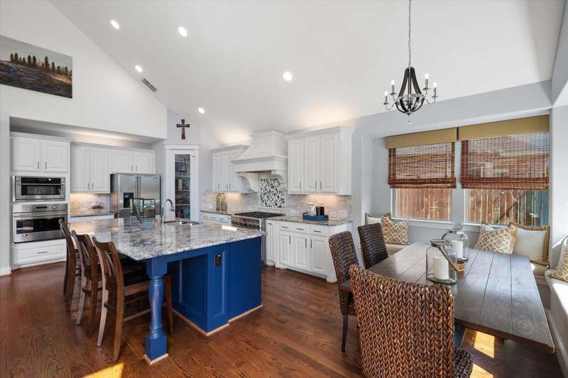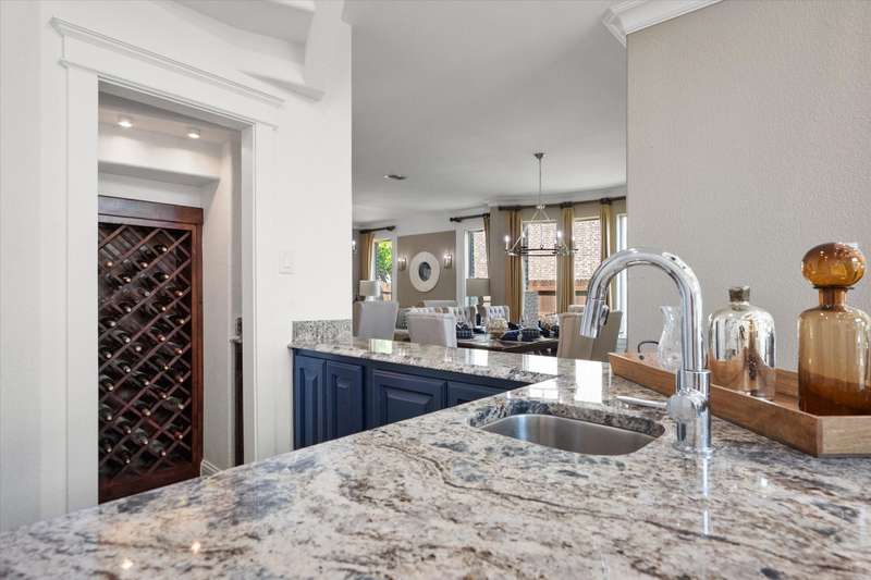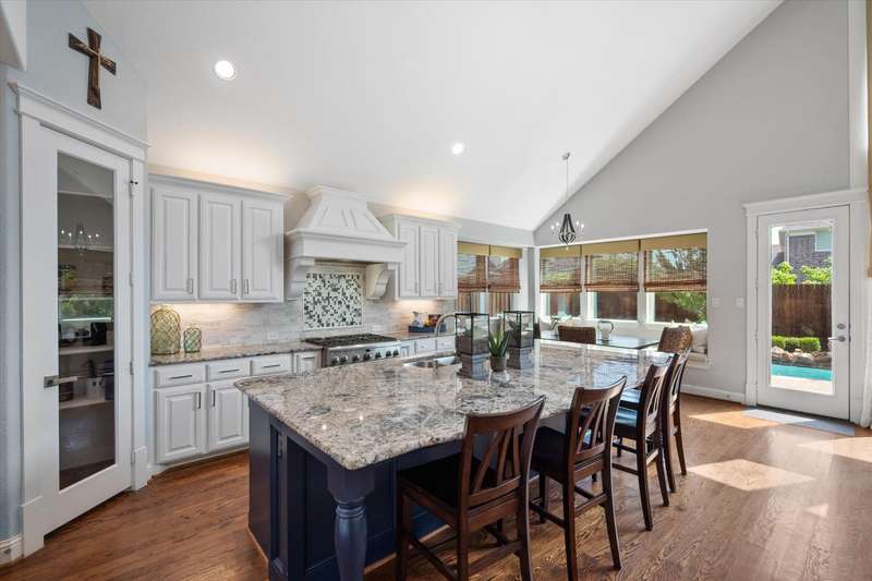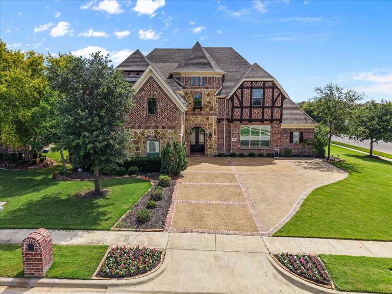 Welcome to 4007 Barlow Court, a 4,802 sq. ft. custom luxury home on a premium corner lot in Mansfields prestigious Bower Ranch. Built in 2015, this 4-bed, 4-bath estate blends timeless design with elegant modern upgrades. The grand foyer features double iron doors and a two sweeping curved staircase with intricate custom millwork, soaring 20+ ft ceilings, a full height stacked stone fireplace, and exposed stained wood ceiling beams. The chefs kitchen stuns with a navy island, stacked white cabinetry, granite countertops, and professional-grade appliances, 6-burner stainless gas cooktop custom wood vent hood with corbels and trim detailing, natural stone & glass mosaic backsplash, custom wine storage. Oversized custom windows with floor-to-ceiling views and trim-wrapped framing grand living room balcony overlook with arched architectural openings and bullnose corners. Retreat to a serene primary suite with private patio access, or entertain in the sunroom and spacious bedrooms, each with upscale finishes and private bath access. Step outside to your personal oasiscustom pool with waterfall, outdoor kitchen, and pergola-shaded dining area. The garage has heat and air conditioning. Every detail echoes quality and craftsmanship in this builder-model-caliber homezoned to top Mansfield ISD schools and minutes from shops, parks, and dining.