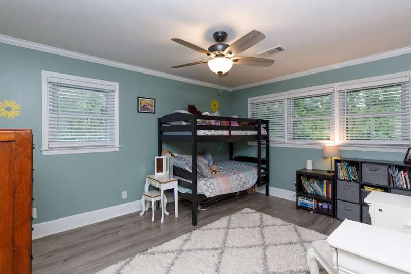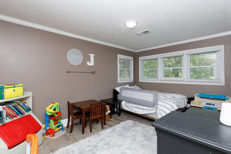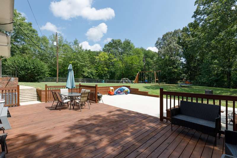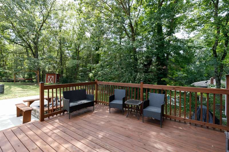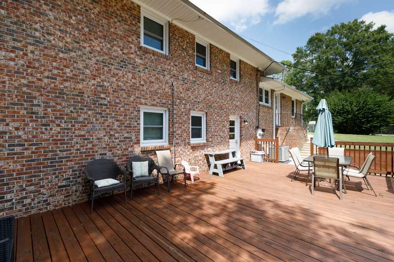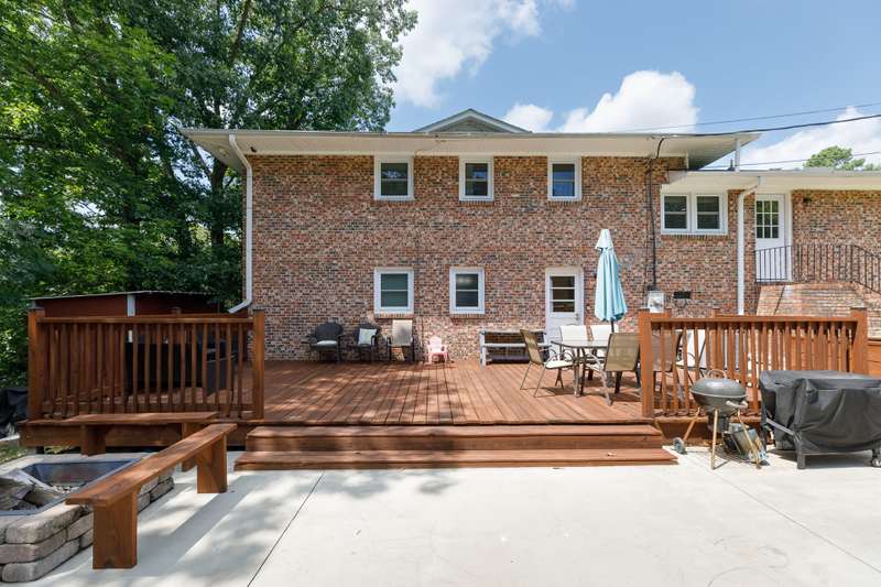 Welcome to this beautifully updated full-brick home with 5 bedrooms and 3 full baths. 2 spacious primary suites?one on the main level and one upstairs?offer comfort and flexibility for any lifestyle. The kitchen shines with granite countertops, a stylish tiled backsplash, and sleek stainless steel appliances. Step outside to a level, fenced backyard designed for entertaining, complete with a huge patio, deck, fire pit, and storage shed. In the last five years has had: new roof, appliances, insulation, AC, water heater, and more! Situated on a corner lot near the park and library, this home is ready to impress!