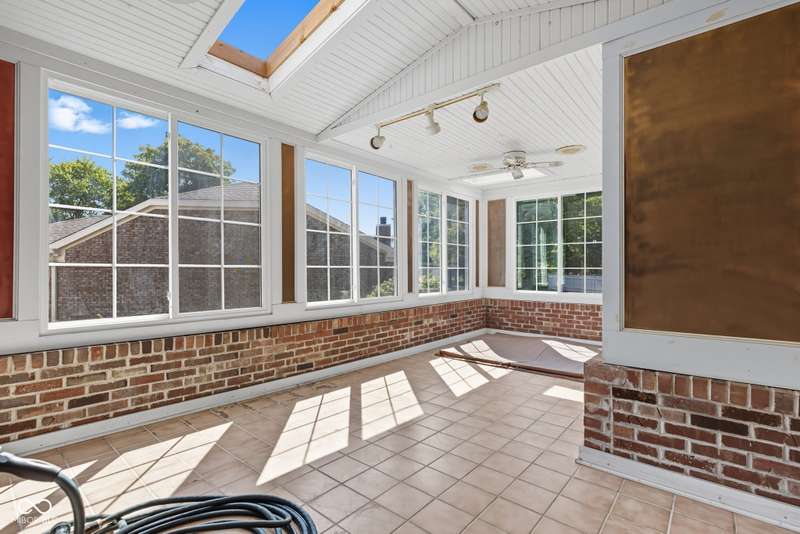Fantastic opportunity in popular Olde Dominion in Zionsville! 3Bed/2.5Bath condo available with 2Car garage and sun porch ready for your vision and updating. This unit is being sold AS IS but please note that the appliances are all included and the mechanicals are newer including a furnace that was just replaced this year. The sun porch has newer windows but it needs some love as the hot tub is inoperable. Note the two story great room with woodburning fireplace and adjacent dining. The primary bedroom upstairs has an ensuite bath with shower and vanity plus walk-in closet. (A similar floorplan recently sold at 150 Dominion closed in the loft to build a second walk-in closet!) Upstairs laundry is super handy plus two nice bedrooms. Location is everything on this condo as you're right by the corner grocery and minutes from the brick street of downtown Zionsville and another few minutes away from the interstate in the other direction. Photos show virtual staging to give you a vibe of what you can do with this place. The previous owner added lots of wood, trim and upgrades and now it needs another redux to be fabulous for the next owner. Come take a look and dream of the possibilities!! Easy to show and ready to go!