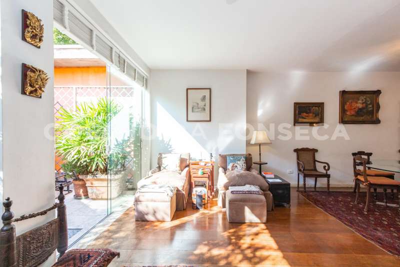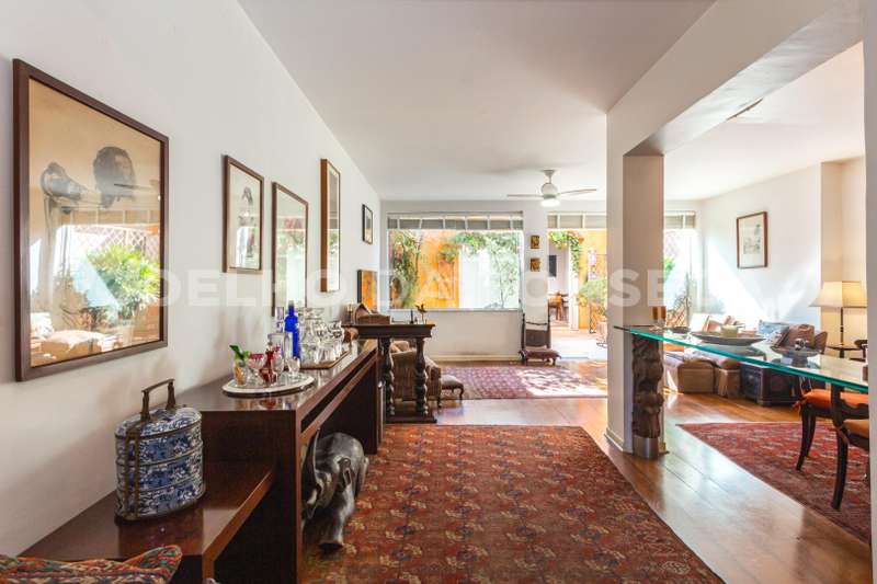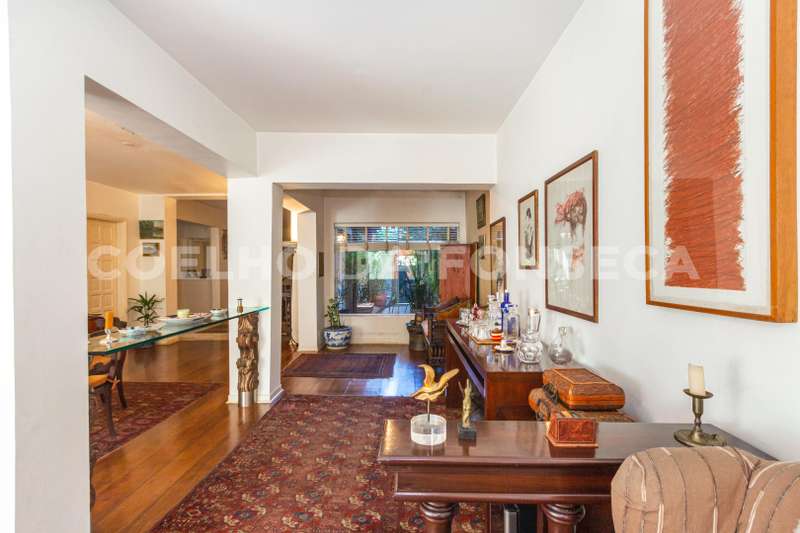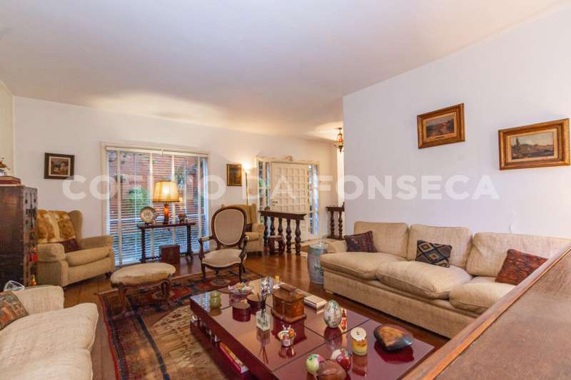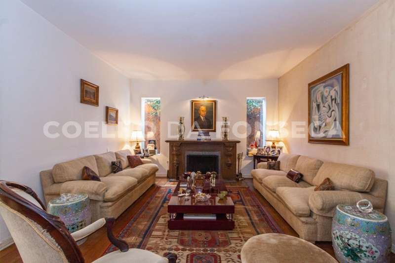 No térreo, living para 4 ambientes com janelões voltados para o jardim. Destaque para a sala da lareira: elegante e acolhedora ao mesmo tempo.