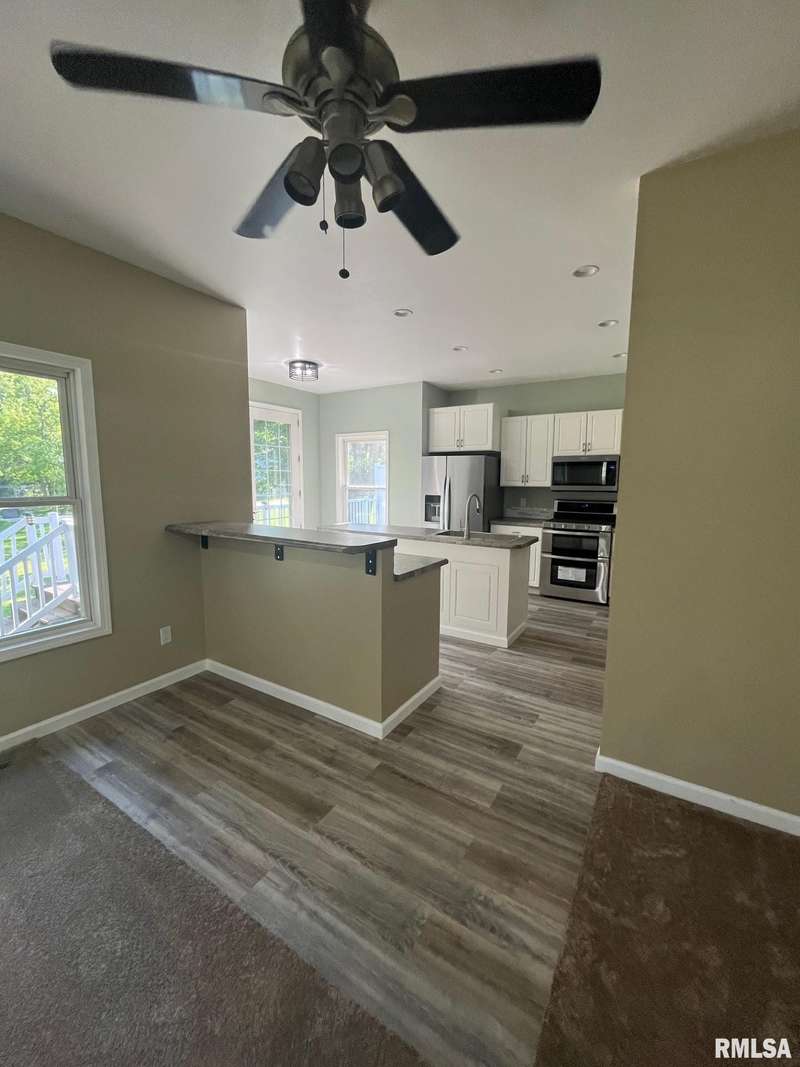 Move-In Ready! 2 Bedroom, 2 bath with 2 car attached heated garage located in Wethersfield school district. Property provides a large corner lot close to school & shopping. This home features an open floor plan, updated kitchen with new appliances and double islands, main floor laundry, wide hallway, recessed accent lighting, built-in glass shelve, all new flooring & freshly painted, 9 ft ceilings, hard wired smoke/carbon monoxide detectors and deck for outdoor living. Primary bedroom includes full bath with pass through closet and sliding door leading to the deck. Additional full bath has walk-in shower. The full unfinished basement includes a framed in room with an egress window, ready for a 3rd bedroom & additional living space. This home offers style, functionality & room to grow. Schedule your private showing today.