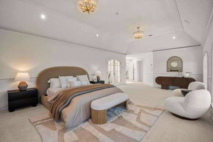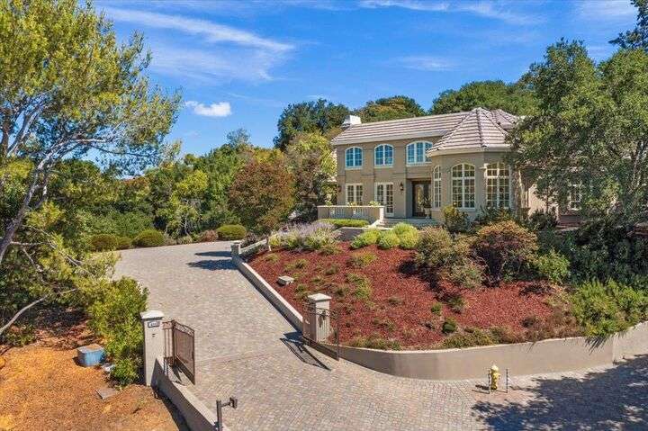 Situated at the end of a private cul-de-sac, this gated Saratoga estate offers panoramic Bay and vineyard views with rare privacy. Over 7,500 sq. ft. this estate features custom millwork, artisan glass, multiple guest suites, a home office, music room, and expansive terraces. The light-filled lower level functions as a second living quarter or entertainment space, complete with French doors to a view terrace, theatre, gym, game room, guest room, kitchenette, full bath, and half bath, ideal for extended family or guests. Resort-style grounds include a pool and multiple terraces with space for gardens, a cabana, or vineyard. Parking for 10+ cars behind a gated entry. Just minutes to shopping, dining, and local wineries, and approx. 10 minutes to Highway 85. A rare private Saratoga retreat at the summit of Silicon Valley.