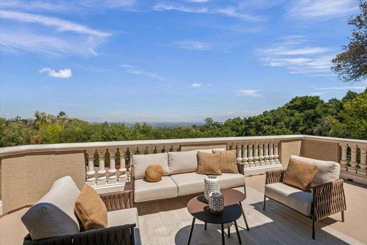 Situated at the end of a private cul-de-sac, this gated Saratoga estate offers sweeping views of the Bay and surrounding vineyard valleys. Designed for both privacy and entertaining, the property features a gated entry, discreet fencing, and a driveway with parking for 10+ cars. Inside, more than 7,500 sq ft of living space spans three levels, showcasing custom millwork, artisan glass, and expansive terraces. Highlights highlights include multiple guest suites, home office, music room, theatre, gym, and game rooms. The resort-style grounds include a pool, spa, and multiple terraces with space for gardens, a cabana, or vineyard. Just about five minutes to grocery stores, shopping, and amenities, and about ten minutes to Highway 85, this property combines seclusion with convenience. A rare opportunity to own a private Saratoga retreat at the summit of Silicon Valley.