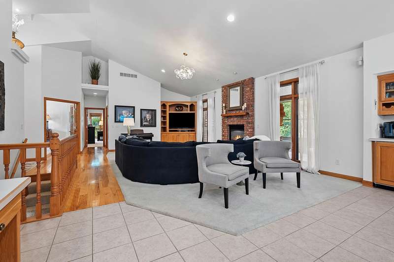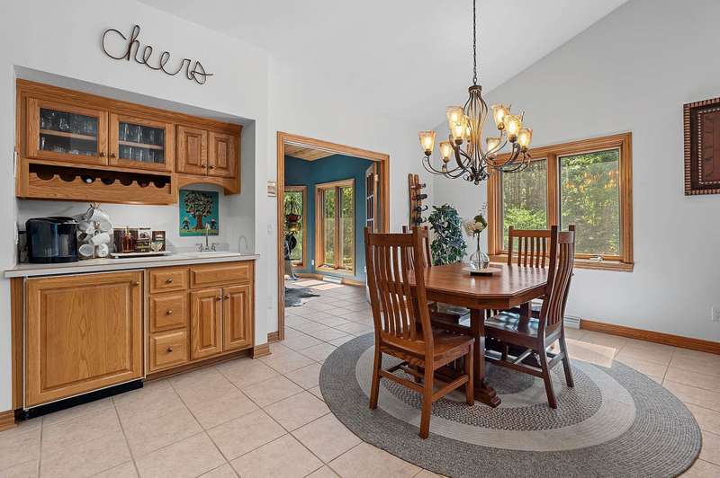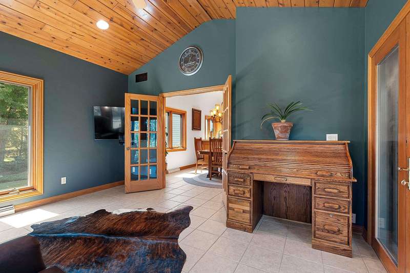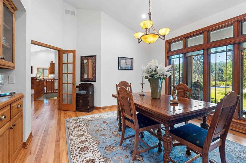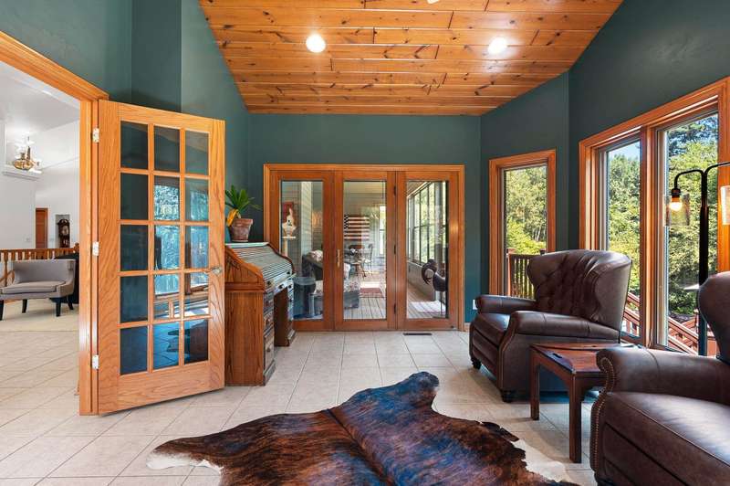 Meticulously maintained ranch tucked away on a secluded, heavily wooded 5-acre lot in the West De Pere School District. The residence offers the perfect balance of comfort, elegance & privacy. The kitchen & dining area flow into a spacious LR centered around a cozy gas FP. Enjoy summer days on the back patio or unwind on the screened-in porch while taking in the peaceful wooded views. The 1st flr primary suite boasts a tray clng, tile shower & generous wk-in closet. Adt’l mn-level highlights include formal dining rm, inviting den, half bath & convenient 1st-flr lndry. Finished LL provides 2 adt’l bdrms, full bath, large rec rm, plenty of storage & wkout to the scenic backyard. 30x40 detached garage too! Showings start 10/6/25. Offers to be presented as submitted; 48hr binding acceptance.