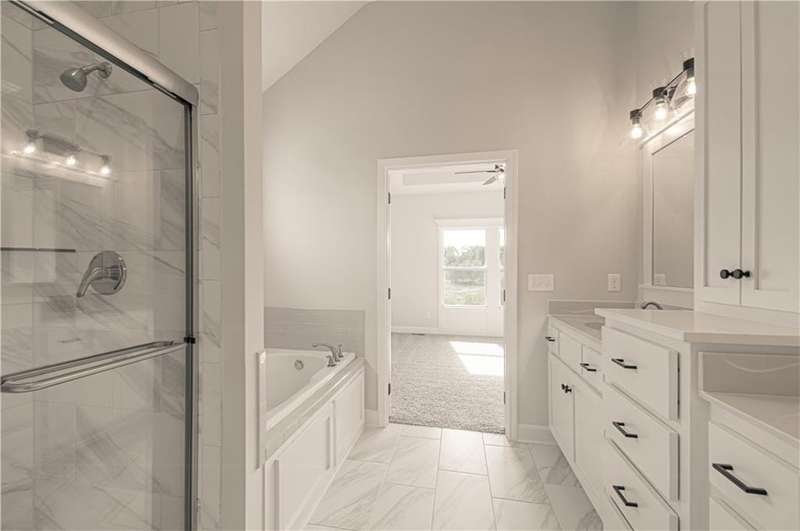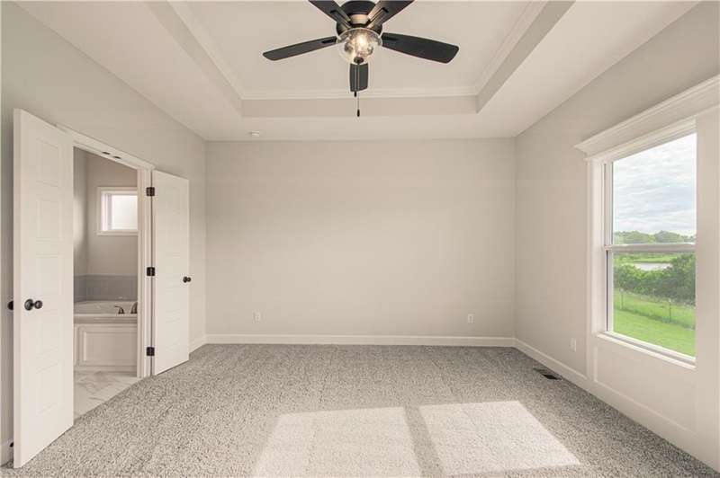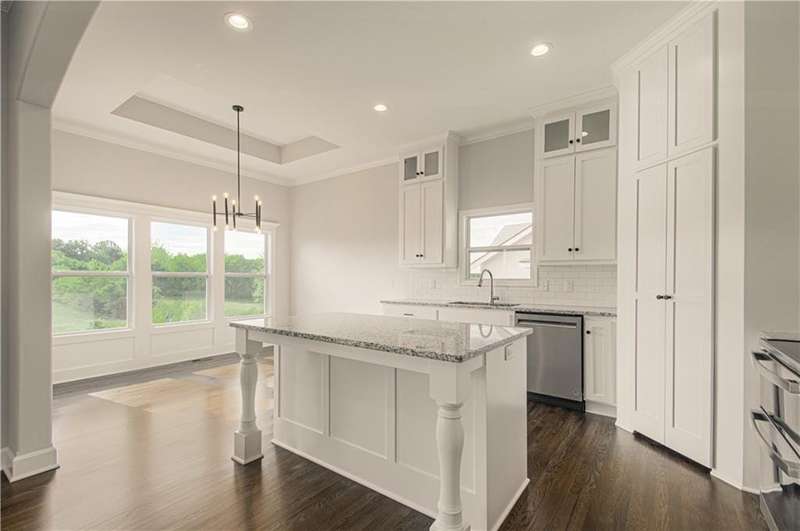 NOAH'S LANDING Welcomes The KENNA by Robertson Construction! This Gorgeous Reverse 1.5-Story offers 4 bedrooms, 2 on the Main Level, 3 Full Baths and a 3 Car Garage. An Open Layout features Floor to Ceiling Windows with view of green space, Stone Fireplace accented with Floating Shelves, Kitchen Island, Solid Surface Countertops, Custom Built Cabinets, WALK-IN PANTRY and REAL HARDWOOD FLOORS. Oversized Covered Deck is accessible from both the Master Suite and Breakfast Area. The PRIVATE Master Suite has a luxurious Master Bath and WALK-IN Closet that conveniently adjoins to the Laundry Room. You will find more Finished Square Footage in the WALKOUT Basement featuring Floor to Ceiling Windows, 2 more Bedrooms, Full Bath, LARGE FAMILY ROOM and a generous amount of storage! PATIO at WALKOUT. Located in the highly-rated Kearney School District! APPROXIMATELY 75 DAYS TO COMPLETION!
