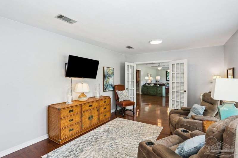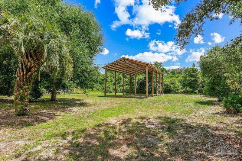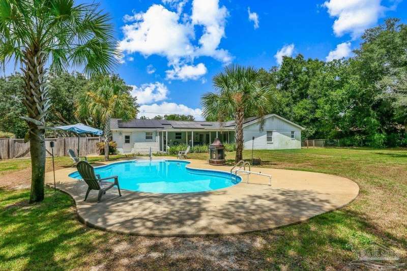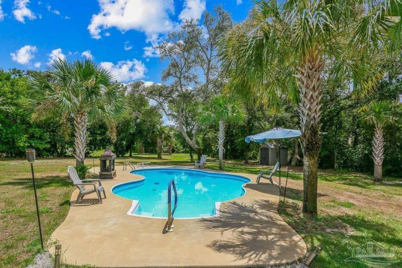 Looking for a home with a pool in Gulf Breeze with NO HOA? This beautifully remodeled brick ranch style home offers 3 spacious bedrooms, 2 full baths, and sits on a generous 1.19-acre lot, providing endless outdoor possibilities. Own the Florida lifestyle with your own in-ground pool, a pole barn with 30 AMP RV hookup, and plenty of space to add an ADU or expand. Recent upgrades include: All new furniture and decor by local design team Electric fireplace, all new TVs mounted, Thankless water heater, Removal of popcorn, finish and new paint, lighting New pool pump motor New dryer and refrigerator BBQ grill Conveniently located near shopping, dining, and just minutes from Pensacola Beach. The Oriole Beach Boat Ramp is nearby for easy access to boating and water activities. No HOA means more freedom and flexibility for homeowners. Don't miss out-schedule your private tour today and see all this Gulf Breeze gem has to offer!