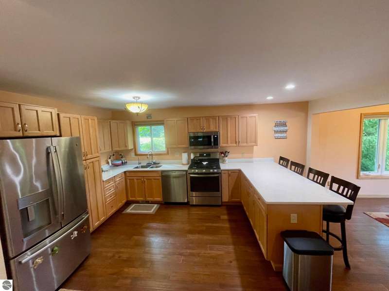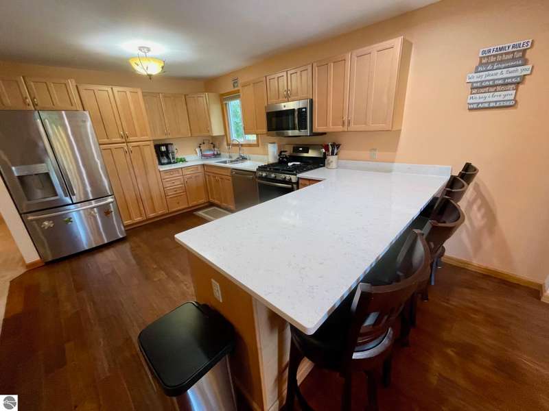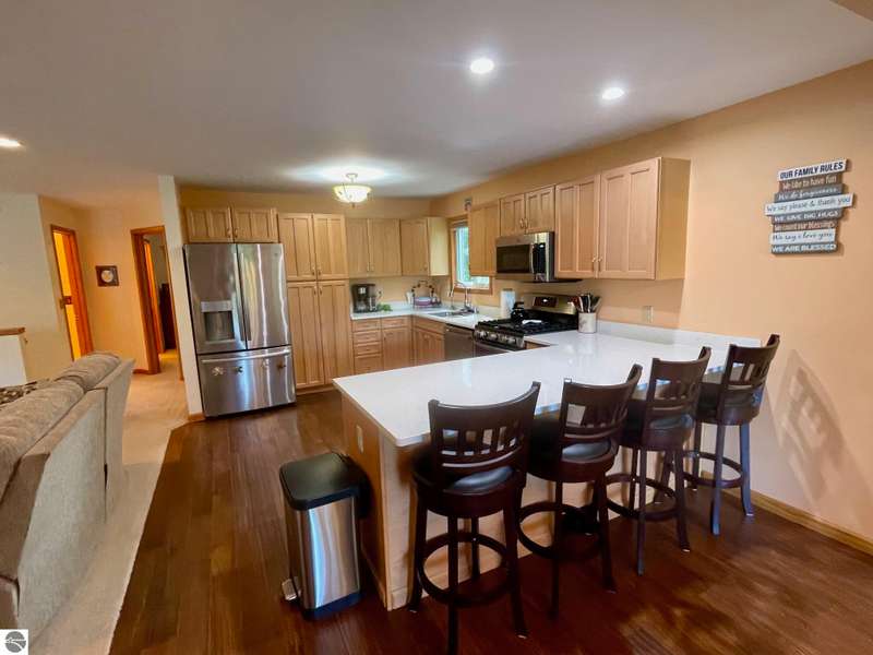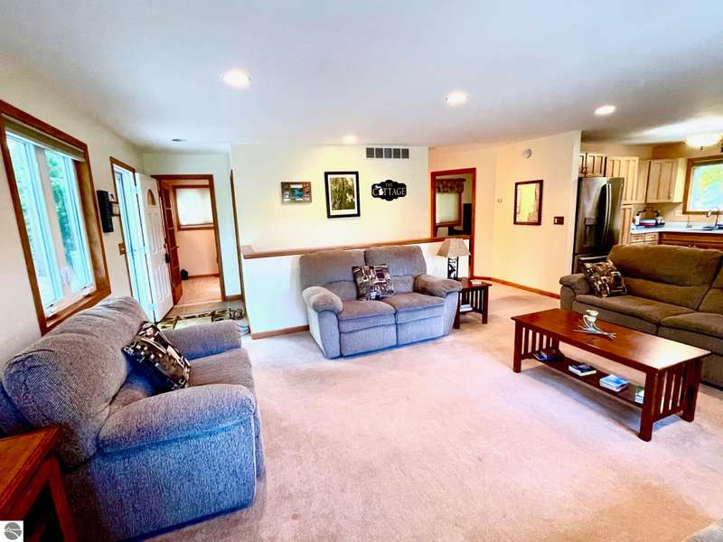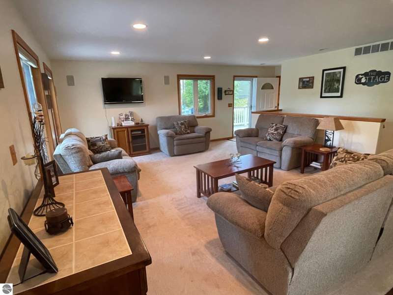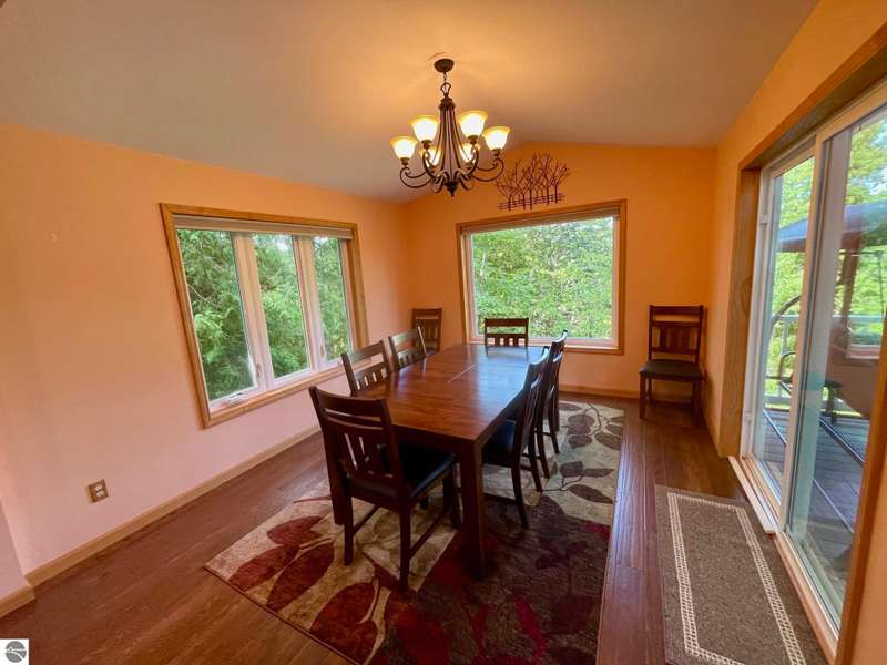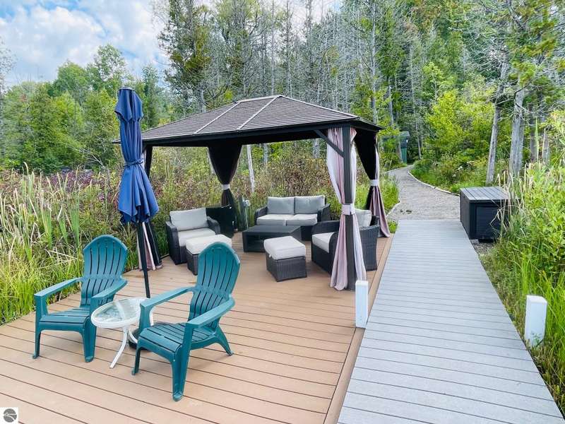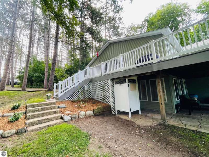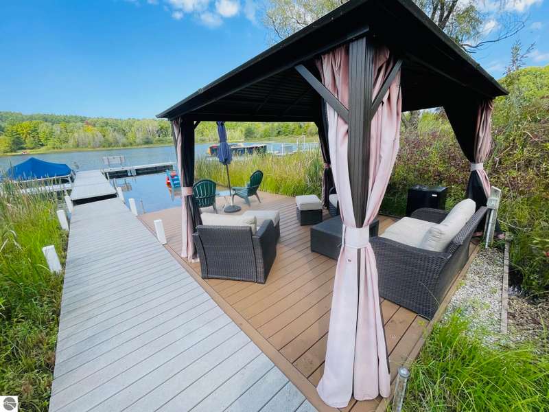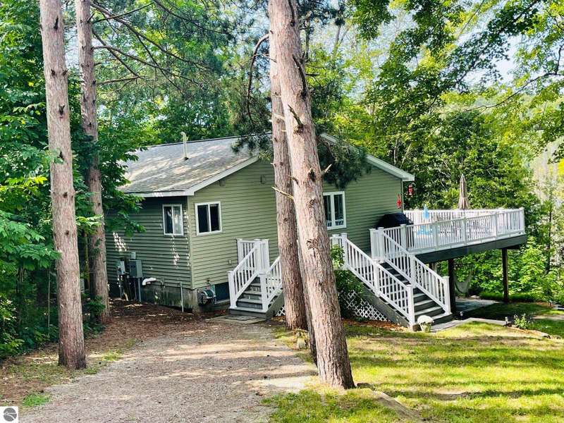 This amazing Wilson Lake home has it all! 150 ft private frontage located on Upper Chain of Lakes on an estate size parcel offering privacy and tranquility. Home recently totally and tastefully renovated featuring gourmet Island kitchen with quartz counter tops, custom cabinets and stainless steel appliances, open floor plan with picturesque Lake views, formal dining room, master en suite, fireplace, wrap around Trex decking with vinyl railing plus flagstone patio, central air, Lower level kitchenette and great room, True Stream Wi-Fi, whole house generator, two full size garages, winding scenic path to lakefront where you'll find gazebo w/electric and decking at waters edge, top line floating dock, which stays in all year. To top it off small sand bottom swimming area for the kids along with outdoor shower and most furnishings included. This home screams of owners pride and truly has it all, a definite must see to appreciate.