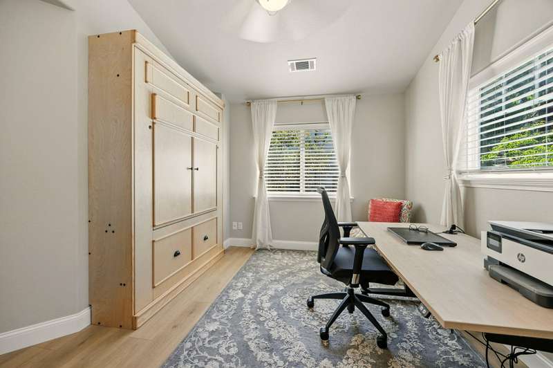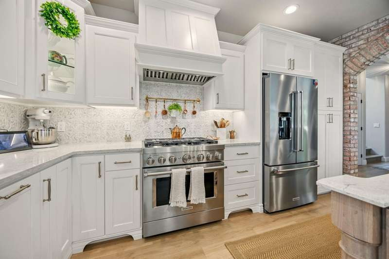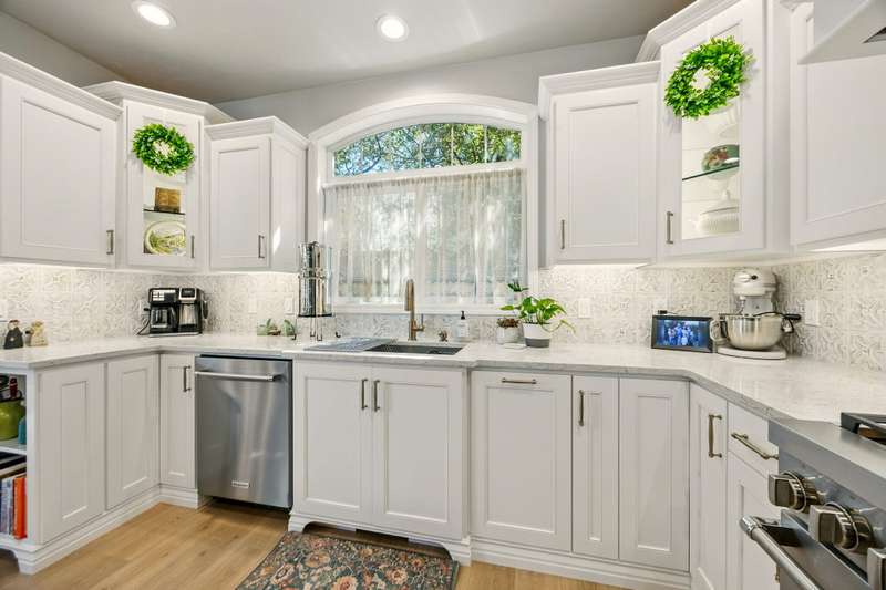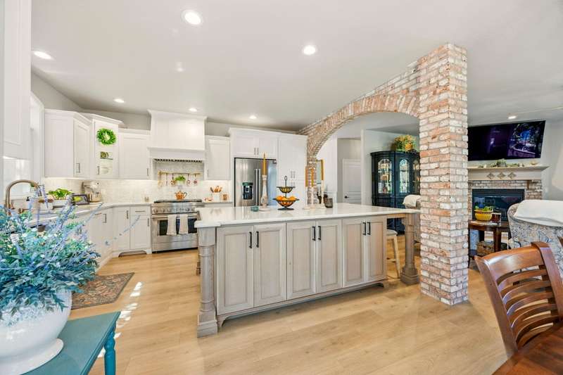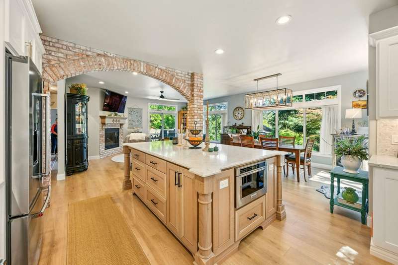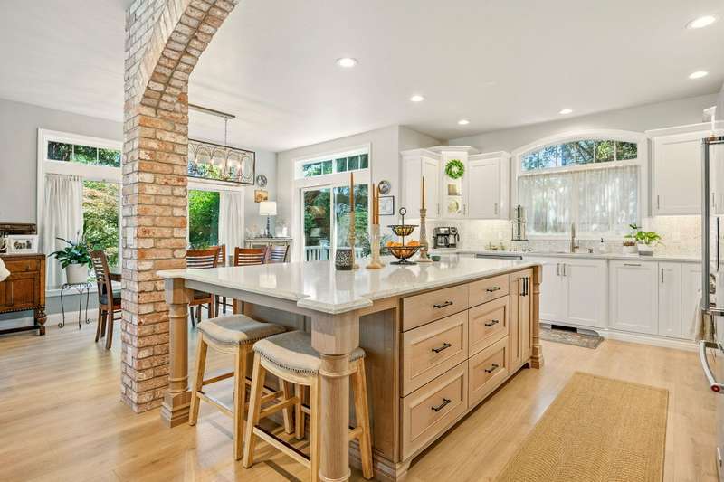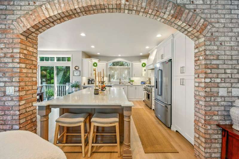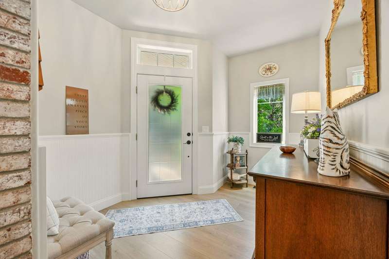 Tucked at the end of a quiet lane in Jacksonville's historic district and set on a spacious lot with mature landscaping, this beautifully updated home is better than new. Extensive renovations inside and out offer turnkey living with ample storage throughout. At the heart is a stunning kitchen with custom cabinetry, underlighting, quartz counters, and top-of-the-line KitchenAid appliances. A nearly 9-foot island with seating makes entertaining easy. The living room features a gas fireplace and arched brick-veneer wall. The spa-like primary suite boasts a walk-in shower, soaking tub, custom vanity, and granite. The guest bath includes a tile-surround shower and quartz-topped vanity. Relax in the sunroom with direct deck access, or enjoy other patios, one plumbed for a hot tub. Additional updates include new flooring, paint, lighting, hardware, and more. An exceptional home offering easy, elevated living near downtown and Britt.