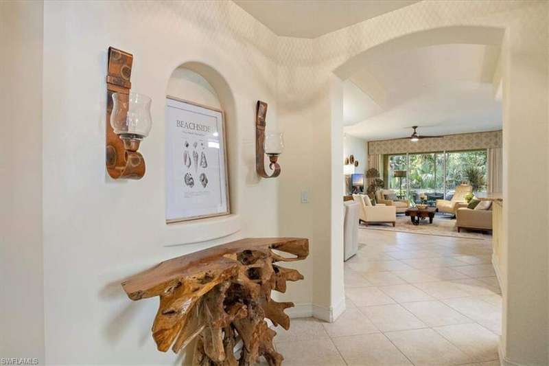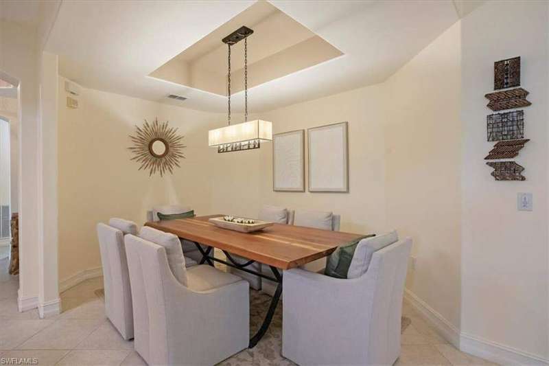Light and bright! Discover the perfect blend of luxury, style, and tranquility in this beautifully appointed 3-bedroom, 2-bath home, located in the highly sought-after gated community of Tarpon Bay. This residence boasts a private setting, thoughtfully designed to offer peace and seclusion with no road noise, ensuring a serene living environment. Step inside to an open and modern floor plan featuring professional designer finishes throughout. The living spaces are illuminated by striking designer lighting, while custom window treatments add an extra layer of sophistication. The kitchen is a chef's dream, adorned with granite countertops, natural gas cooking and outfitted with top-of-the-line appliances. Tarpon Bay is renowned for its incredible amenities, elevating the standard of resort-style living. Residents enjoy access to a breathtaking infinity pool, ideal for relaxing on sunny afternoons. For the active lifestyle, the community features clay tennis courts and a vibrant pickleball community, perfect for socializing and staying fit. Nature lovers will appreciate the three sparkling lakes that dot the landscape, adding to the beauty and tranquility. The home's location is unbeatable-just moments from world-famous beached and the convenience of RSW airport, making both leisure and travel effortless. Experience the best in modern Florida living: a sophisticated home in Tarpon Bay, surrounded by luxury amenities, natural beauty, and a welcoming, active community. NEW Roof. NEW Exterior Paint. NEW interior upgrades. The amenities, Clubhouse, Cable, Wi-Fi, Water, etc. are included. No special assessments.
