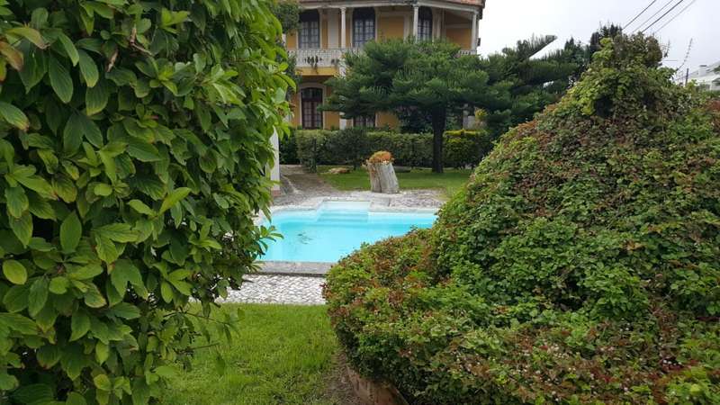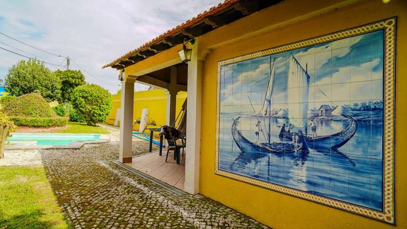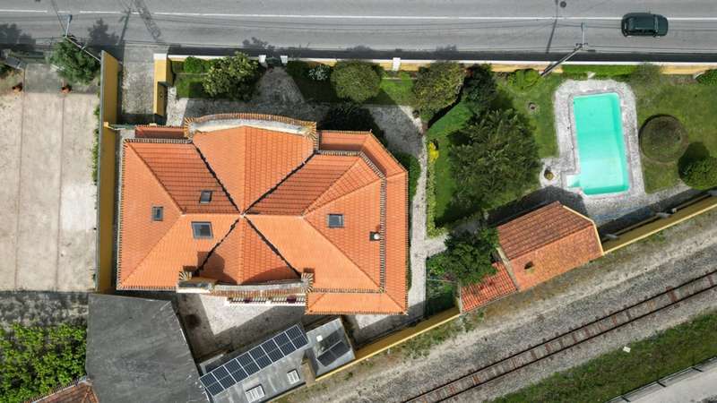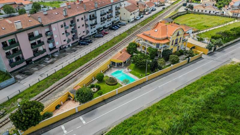 A magnificent property dating back a century that exudes elegance, charm, and history, and is situated in the picturesque Aveiro town of Esgueira. This listed property dates back to 1929 and has been completely renovated and remodeled, maintaining its original design, providing a unique opportunity to live in a house full of history and refinement. The three-story villa is situated on a 1,250-square-meter plot and features an expansive garden adorned with leafy trees, providing an ideal setting for outdoor relaxation. In addition to covered parking for four vehicles, this area features a swimming pool, barbecue area, covered outdoor kitchen and annexe space that is utilised for storage and wine cellar. In addition, the residence is outfitted with solar and photovoltaic panels to optimise energy usage. On the first floor there is a very large hall, characteristic of the period, which connects to the common dining and living room with fireplace, the fully equipped kitchen, as well as a rawing room, an en-suite bedroom facing east and a guest bathroom. The private area, situated on the second floor, comprises a full bathroom, four bedrooms, two of which are en-suite, and a library/office area. An expansive lounge on the top floor has been converted into a roomy games room and living area, in addition to two bedrooms and a bathroom. The details of this property are remarkable, from the presence of exotic woods to the tiles, handmade panels and fantastic custom-made stained glass windows, highlighting the originality and exclusivity of the finishes. All the furniture and doors have been custom-made, further enhancing the exclusivity of the villa, and the crafted and restored ceilings add personality and sophistication to the interior spaces. Highly accessible, in close proximity to the highway, and with an abundance of services. CHARACTERISTICS: Plot Area: 1 250 m2 | 13 455 sq ft Deployment Area: 165 m2 | 1 778 sq ft Building Area: 604 m2 | 6 502 sq ft Bedrooms: 7 Bathrooms: 6 Garage: 4 Energy efficiency: D