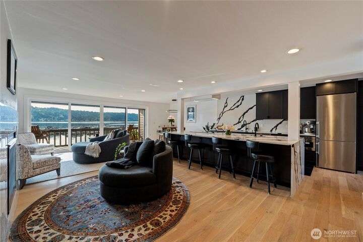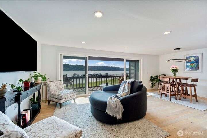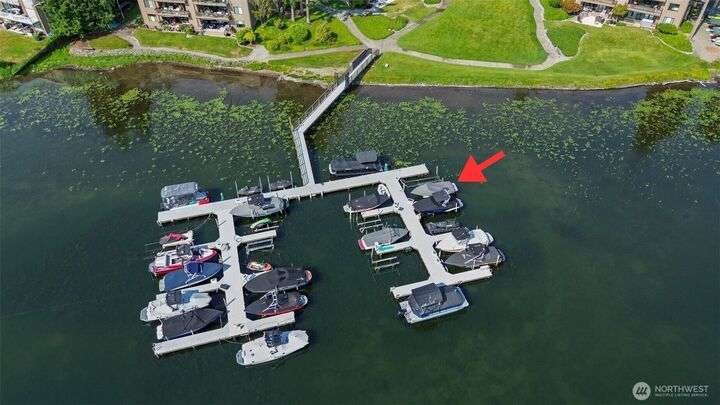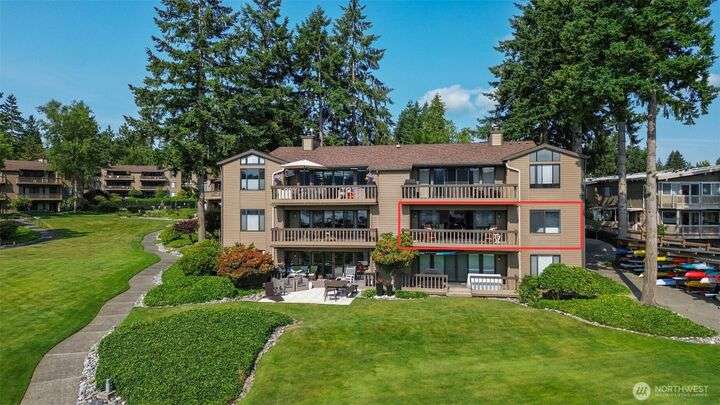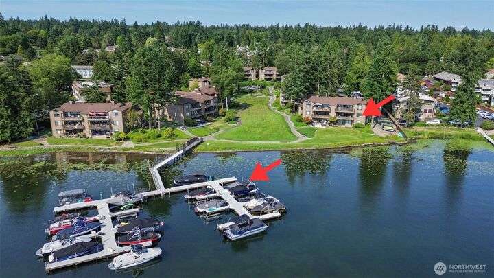 Welcome to this fabulous 2 bedroom 2 bathroom condo within the Lake Villas Community. Minutes to the dock where a new boat lift at 8500lbs was installed at the end of 2023. This 1 level condo is fully renovated at the end of 2023 with all approval from the HOA and the city of Redmond. With an open floor concept with the living space, kitchen and eatin area with a cozy new gas fireplace. A large spa like primary bedroom with lots of natural light and veiws of Lake Sammamish. The spare bedroom has plenty of space for your needs whether it be an office or a bedroom. All closets are outfitted with custom closet systems. An amazing 6 acre property with a club house including an outdoor pool, spa and gym.