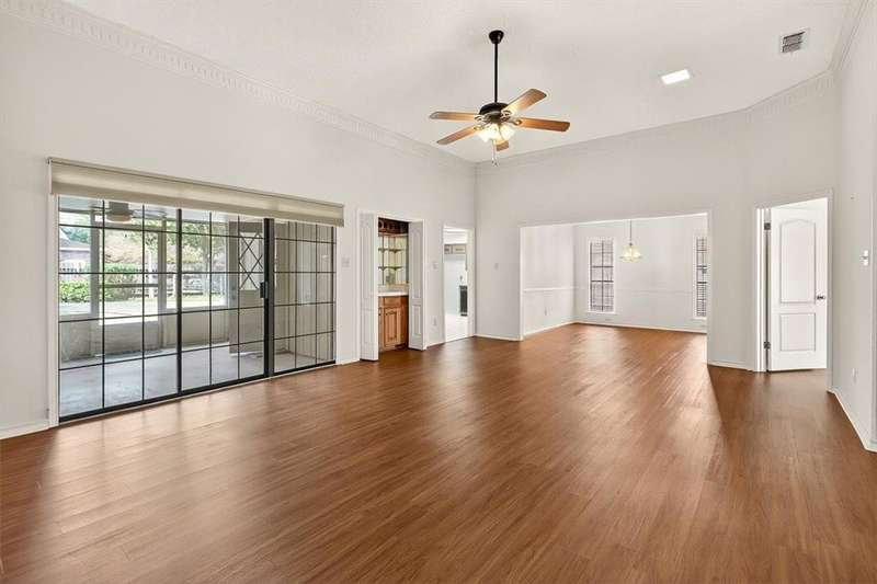 What surroundings do most people want in a home? Location is usually a first consideration. Buckingham offers controlled access, limited traffic, two median parkways perfect for leisure walks or jogging, tennis court, concrete streets and rear service drives for every residence. Appreciate the larger lots and the trees. This home was loved and now offers a new opportunity for someone to update and enjoy the surroundings. Children grew up, parents no longer wanted to maintain pool thus it was covered with decking. Explore the possibilities.