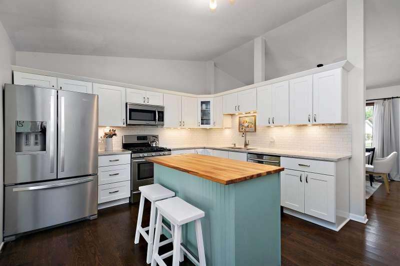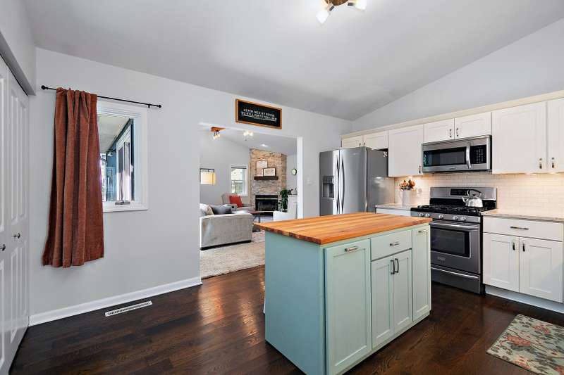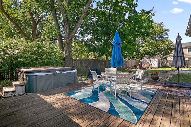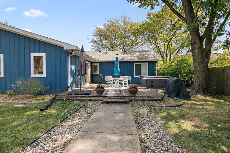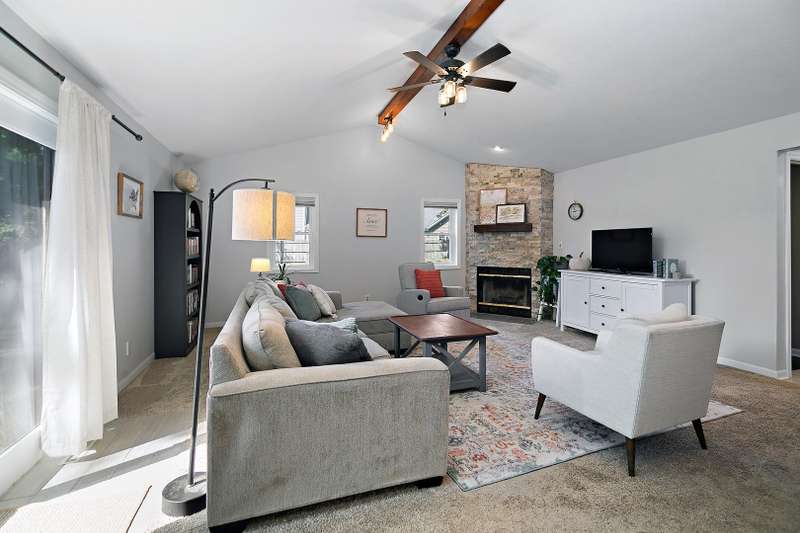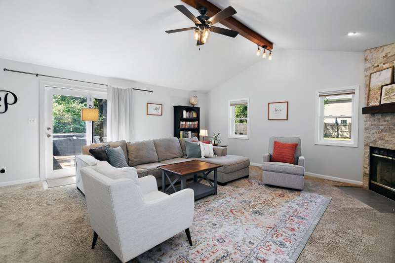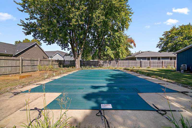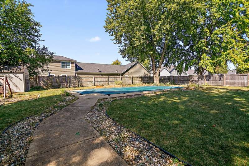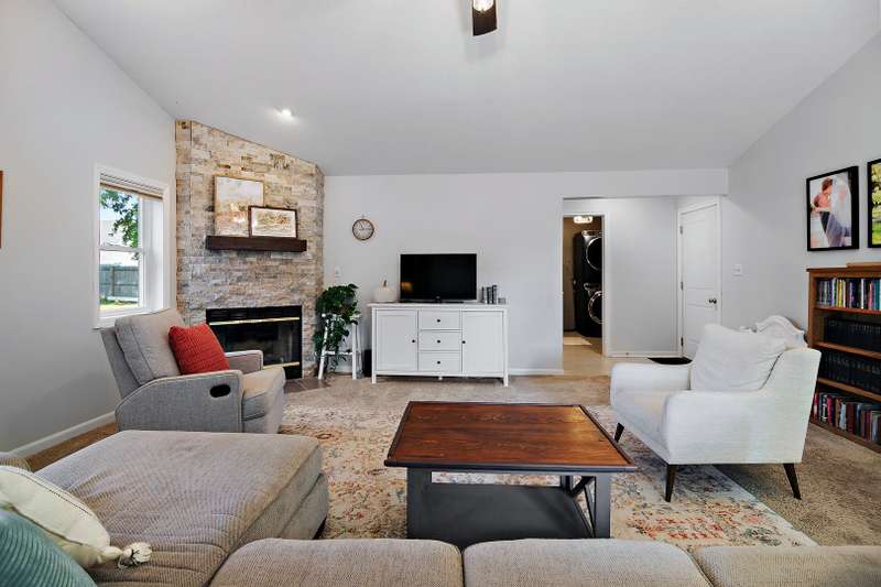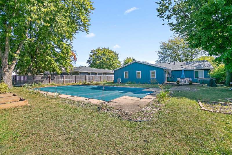 Welcome to this beautifully updated 3 bedroom, 2.5 bath ranch offering 1,645 square feet of stylish living space. Situated on over a quarter-acre fenced lot, this home combines an open layout, modern updates, and incredible outdoor amenities. Inside, vaulted ceilings and neutral paint create an open, airy feel throughout. The front room offers flexibility as either a living room or dining room, while the kitchen impresses with white cabinetry, stainless steel appliances, granite countertops, subway tile backsplash, a large pantry closet, and space for an island. Hardwood floors flow through the kitchen and dining area. The vaulted family room features cozy carpeting and a stone, wood-burning fireplace with gas start. The split floor plan places the third bedroom off the family room, while the newly renovated primary suite is a showstopper with a tiled walk-in shower, double sinks, soaking tub, and walk-in closet. Additional highlights include a separate laundry room with bath combo, insulated garage with gas heater, new water heater (2024), new roof (2025), pool pump (2025), and some new windows. Step outside to your private backyard retreat-complete with a heated in-ground pool with deep end, hot tub, shed, and plenty of space for entertaining. This ranch home checks every box with modern updates, a flexible floor plan, and an outdoor oasis perfect for year-round enjoyment.