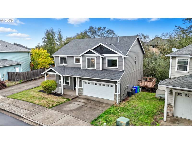 This delightful 4 bed/2.5 bath home is the embodiment of smart design! The thoughtful & spacious floor plan simultaneously gives those cozy vibes while providing plenty of entertaining, office, and/or flex space. On the main floor you’ll find the formal dining room which flows directly into the dreamy kitchen/great room where you’ll be greeted by a truly spectacular floor to ceiling picture window that looks out onto the lush greenery of Kelly Creek providing a sense of serene enjoyment and privacy to boot! Gleaming bamboo flooring throughout, vaulted ceilings, beautiful cabinetry, plenty of counter space, a generously sized eat-in island w/storage, a breakfast nook & pantry, this kitchen is definitely the heart of the home! The kitchen flows directly into another charming gathering space made all the more cozy via the gas fireplace and elegant mantle- use it as a family room or formal living room as your needs dictate! A french door opens out onto the deck and further enjoyment of the greenspace. A half bath & entry to the garage rounds out the first floor. Up the architecturally pleasing open staircase & onto the 2nd floor you’ll find another flex/ gathering space which would function wonderfully as a 2nd family room, play space, office or workout space. You’ll find the primary, 3 additional bedrooms, a second full bath, & the conveniently located laundry room w/utility sink & storage on this floor. The primary bedroom feels like a true sanctuary. Enter through double doors into this airy space with its vaulted ceilings and tranquil views of the greenspace. You’ll be bathed in light in the spa-like ensuite featuring a skylight, a double vanity, a grand soaking tub & separate shower. With its close proximity to the Columbia River Gorge, Mt. Hood & Oxbow park, as well as everyday conveniences & a wonderful school district…this one has it all! Other features: New exterior paint 10/25, roof (2019), Covered front porch, Low maintenance yard.