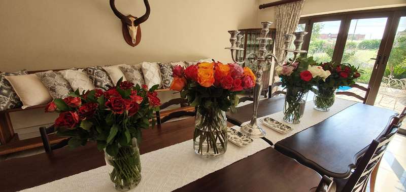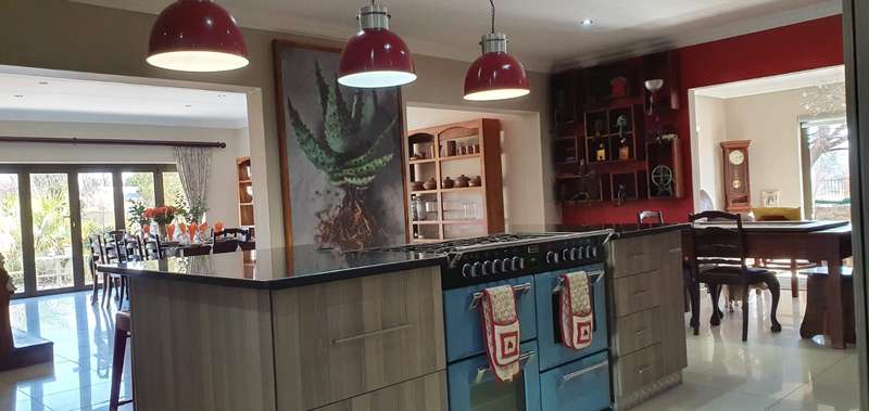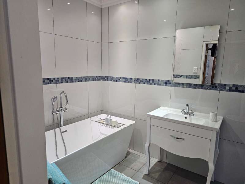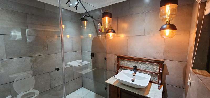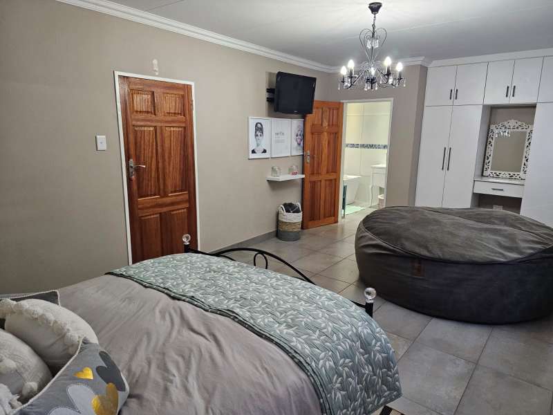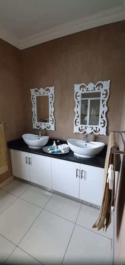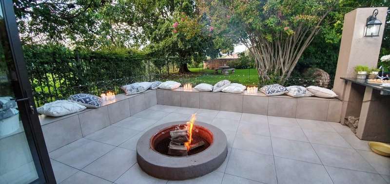 This spectacular home is available for exquisite living . Do you love entertaining? Then this house is for you! There is a separate braai room with bathroom to entertain your guests. A spacious open plan kitchen and dining room and living room.. The living space is opening to the swimming pool and to top it up a fire pit with built in benches. The main house has 3 bedrooms and all three is on-suite and has built in cupboards. The main bedroom has a instep closet and en-suite bathroom. The tiles and light fixtures and bathrooms in the house are modern and lovely. There is an additional room which could be used as a gym or office. On the same premises is an additional house which could be rented or is suitable for families preferring to stay on the same premises. This house has three bedrooms with a bathroom and living room and kitchen.