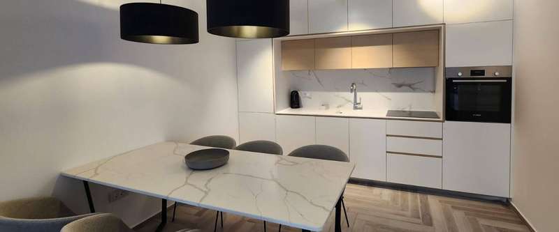 Key features of the apartments include spacious and stylish living. This modern one-bedroom apartment is 78.95m2 and has open-plan living space with a dining area and kitchen. It is complete with premium finishes, floor heating, air conditioning, a dishwasher, and a washing machine—designed to provide the comfort of a five-star hotel at home. Each floor has state-of-the-art rack rooms for optical cables and telecommunications, ensuring high-speed connectivity with complimentary Wi-Fi in common areas and 55 SAT channels in every apartment.