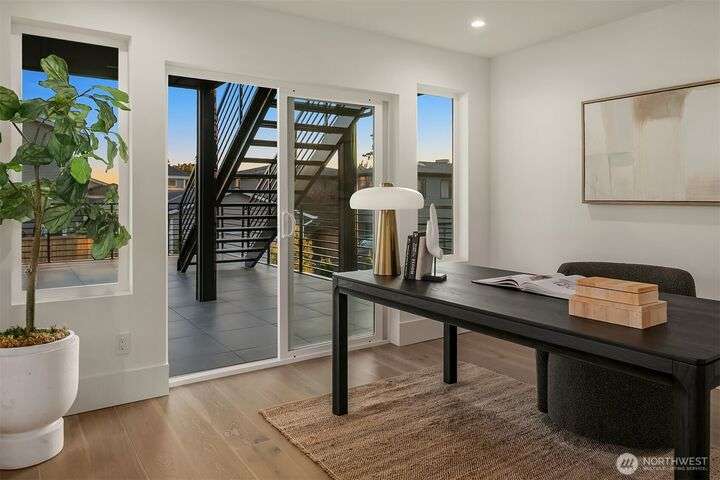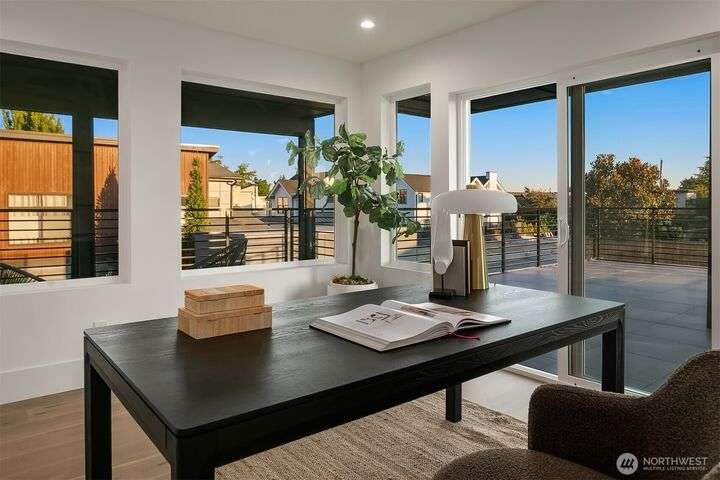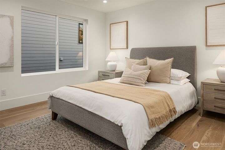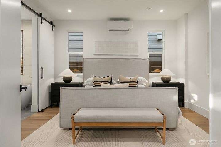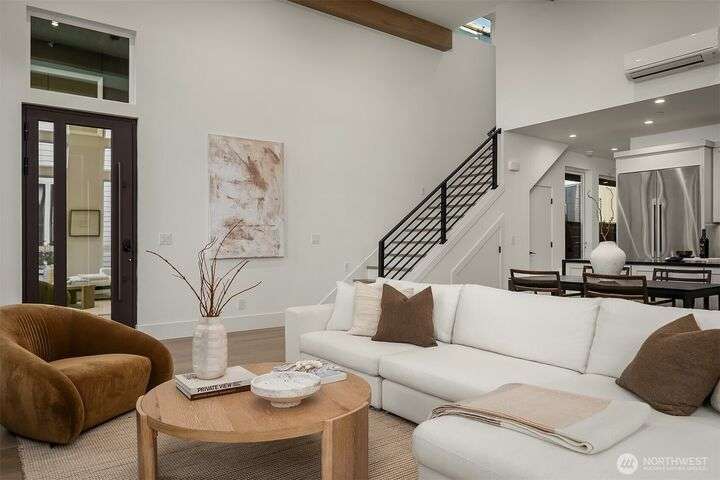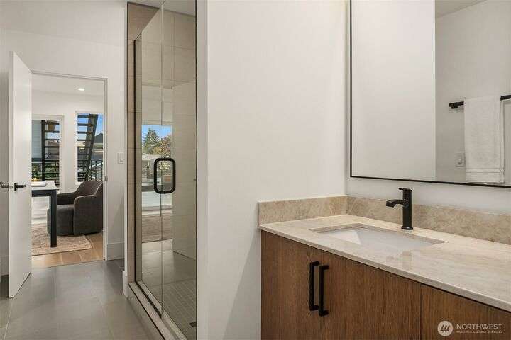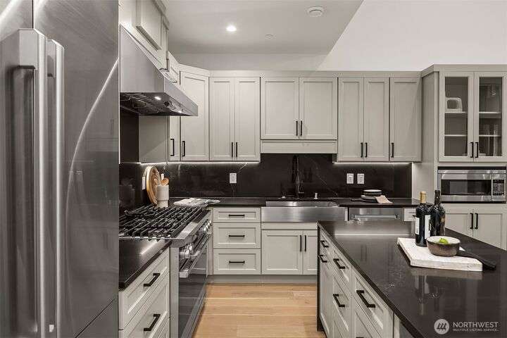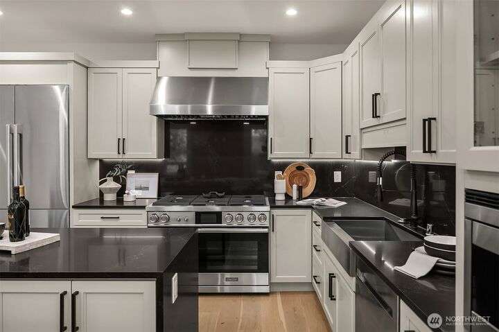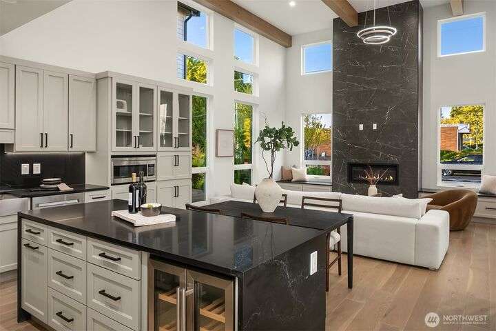 Located in coveted West of Market, this newly completed home blends luxury and comfort just steps to downtown, parks, and the waterfront. Upon entering, you are greeted by a stunning great room with 16-ft vaulted ceilings and a floor-to-ceiling fireplace. The spacious kitchen features a double waterfall quartz island, full slab backsplash, Dacor professional-grade appliances, and walk-in pantry. Main floor primary suite with lavish 5-piece spa bath featuring quartzite countertops, heated floors, and large soaking tub. Upper level features 2 additional bedrooms, and access to 600sf of entertainment deck including a 400sf rooftop with panoramic views of lake and mountains. No shared walls, fully fenced yard, A/C, 2-car garage w EV charger.