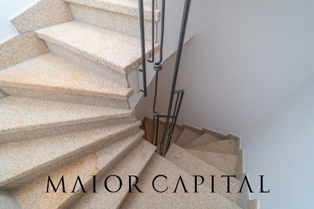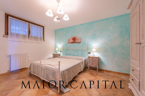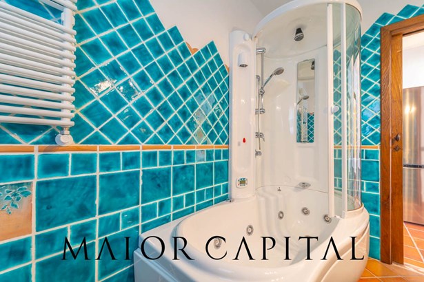 The villa is spread over two levels, housing two spacious and bright three-room flats. Both units consist of a cosy and functional living area, two large double bedrooms, and enjoy natural light entering through the large windows, creating a warm and cosy atmosphere. The property is surrounded by a private garden on three sides, perfect for relaxing outdoors in total privacy. On the ground floor, the chestnut doors provide a rustic elegance, while the ash doors in the basement add a modern and refined touch. The bathrooms, made with Cerasarda tiles, complete the look with a unique and high-quality design.