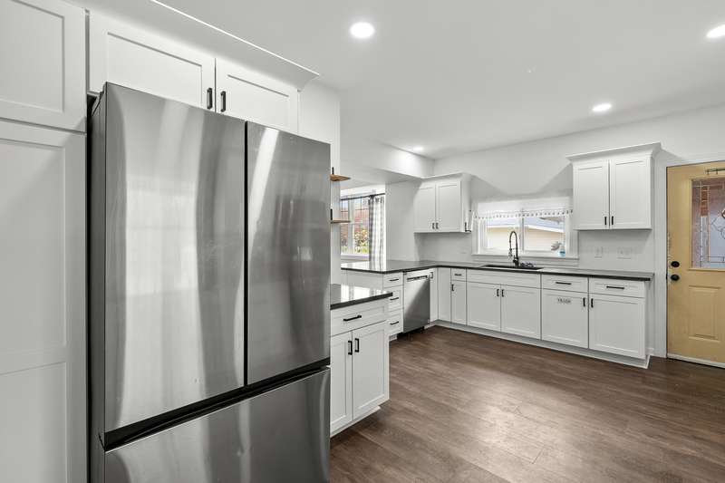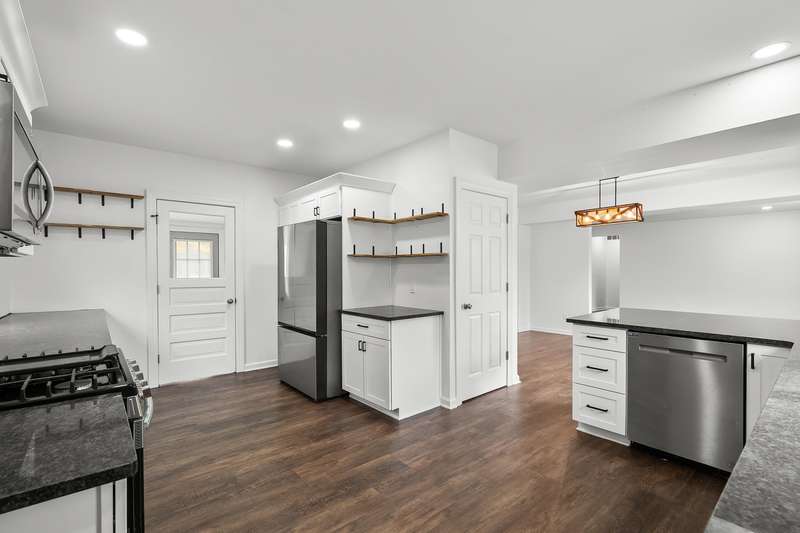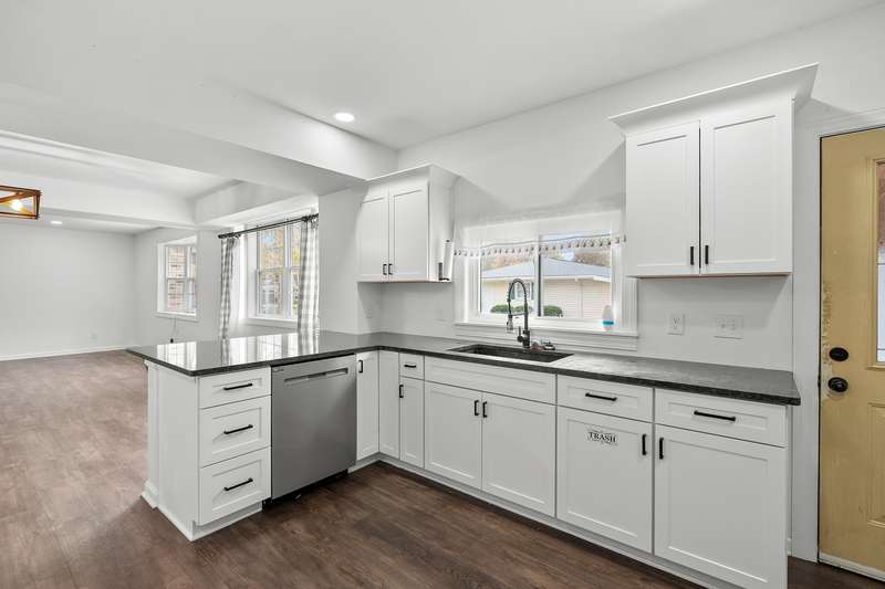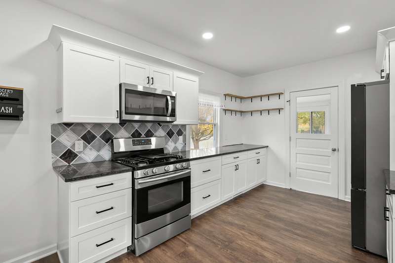 Freshly renovated and move-in ready, this spacious 2,259 sq. ft. home in Marshall offers modern updates throughout. Situated on a 0.39-acre lot, it features 5 bedrooms, 3 full baths, and an attached 2-car garage with a rear workshop/storage area. The main floor includes a new kitchen open to the dining and family rooms, two full baths, a living room, and a convenient laundry room. Upstairs, the large primary suite is joined by three additional bedrooms and another full bath. Updates include a newer roof, replacement windows, furnace, A/C, and water heater. The large backyard features a patio, covered porch, and garden area. Ideally located near all Marshall amenities, this home backs to a wooded area and sits across from Hughes Elementary School.