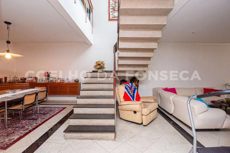 No piso superior: 3 suítes + escritório (duas das suítes com acesso ao terraço)