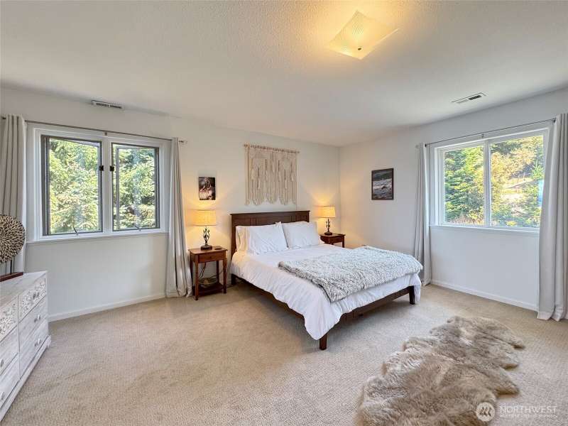 STUNNING VIEWS: Protection Isle Mt Baker Victoria & Olympics! Fully Furnished short term (6-7 months) 2 Bed/2 Bath unit. Main floor offers entry, Living room, kitchen, dining, laundry. It also has large bonus room w/walk-in closet + a full bathroom. Living room has vaulted ceilings, gas fireplace & expanded views from the many windows. Beautiful landscaping with lawn service included. Don't miss out on this opportunity to experience Winter on the Olympic Peninsula! Cozy up by the fire and enjoy the view! 2 car garage and shared yard space. Most utilities are included. This is an upstairs unit in a duplex.