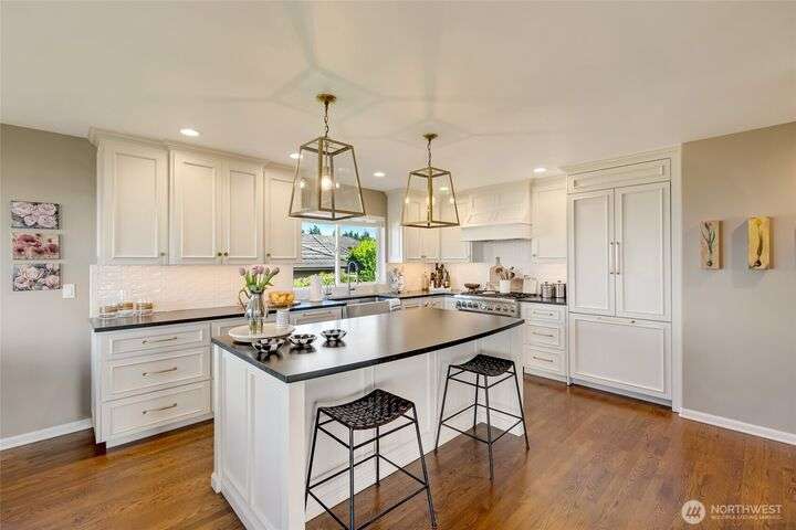 An amazing opportunity off of Mukilteo Boulevard! Perfectly positioned for enjoyment of expansive Puget Sound views from the Olympics to the Cascades. This 2850 square foot rambler has been beautifully remodeled and offers three bedrooms, two bathrooms (with heated floor) and a three-car garage. The floor plan is fantastic and is wonderful for entertaining. The hardwood floors shine and the ceiling soars. There is a huge area under the home that is great for storage and/or a wine cellar. Located just a few miles from Paine Field Airport and from Everett's exciting Waterfront Place.