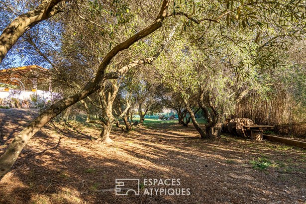Outdoors, everything invites relaxation: a large landscaped garden with olive and fruit trees, a covered heated and cooling pool (10×5 m), a petanque court, and multiple sun-drenched terraces. A 70-meter-deep borehole provides water to several points throughout the property, while a water softener and complete technical installations ensure optimal comfort. Parking is easy with a double garage, two covered spaces, and a large secured area accommodating several vehicles.