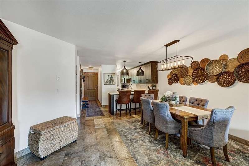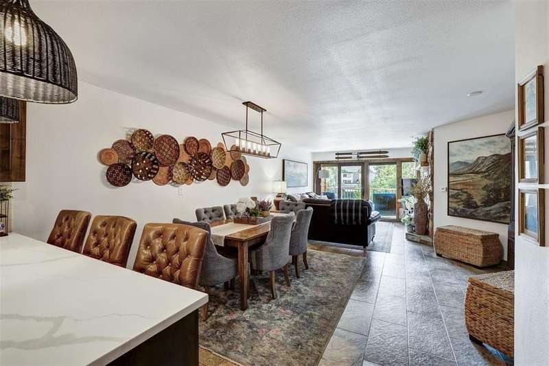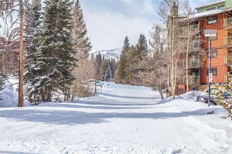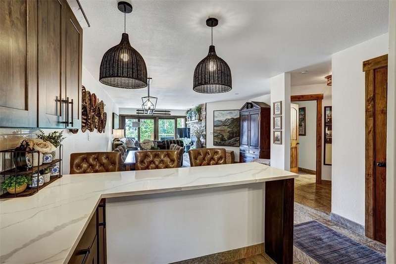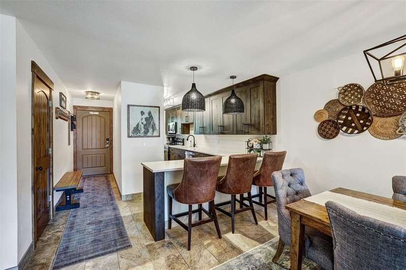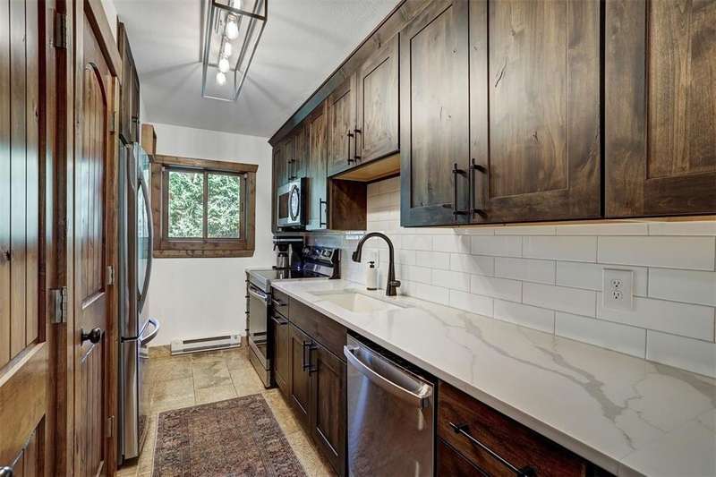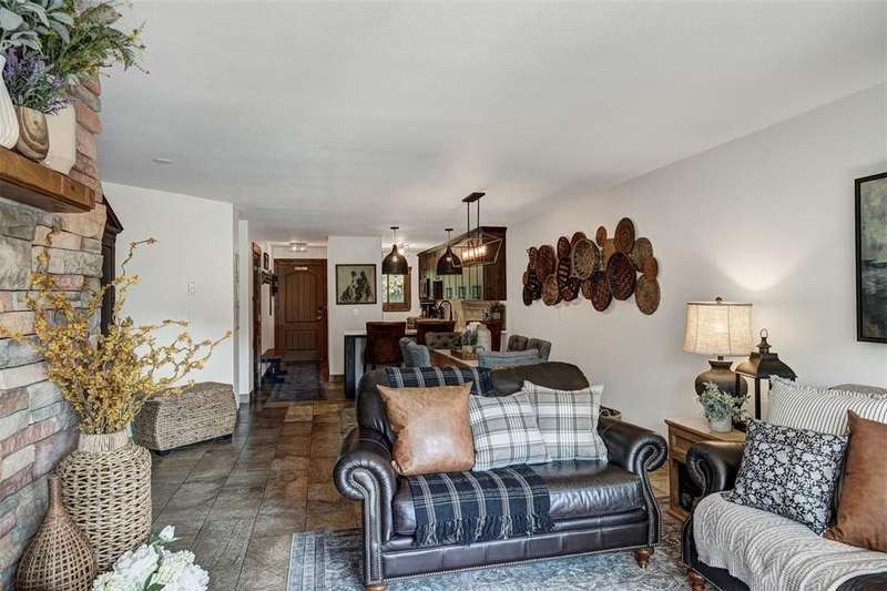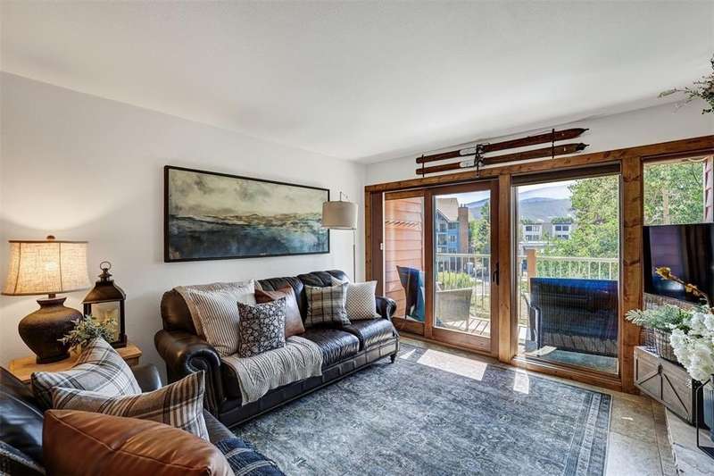 This 2-bedroom, 2-bath condo puts you right where you want to be in Breckenridge—literally on the ski run and just a short walk to Main Street. Whether you're hitting the slopes in the morning or heading to town for dinner and drinks, everything is right outside your door. The soothing sounds of the Sawmill Creek complete this mountain delight. Inside, the condo is recently upgraded with a warm, modern mountain vibe. The open living area is perfect for relaxing after a day of adventure, with a cozy fireplace and updated finishes. The kitchen has been completely remodeled with all new quartz countertops, cabinets, appliances, lighting and fixtures. New paint and carpet add to the upgrades, as well. The deck boasts southern sunshine, offers beautiful views of Baldy and the drifting notes from the orchestra in the summer. Tired legs and lungs at the end of your day? No problem ! Enjoy the convenience of the elevator to whisk you and your ski gear upstairs. Ski gear then stows away safely in your private ski locker. This is the kind of place that’s hard to find—true ski-in access, walkable to everything in town, and already beautifully updated. Bus stop directly next to complex to take you to the ski lift of your choosing. Whether you're looking for a weekend getaway, full-time spot, or rental property, this one checks all the boxes. Breckenridge Zone 1 and STR permits are available.