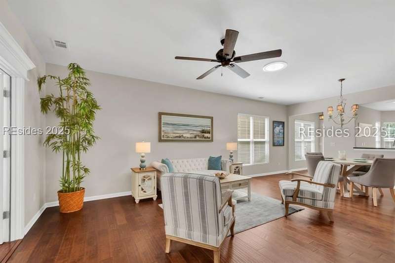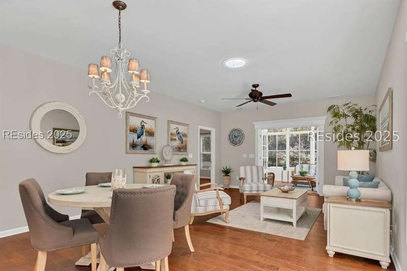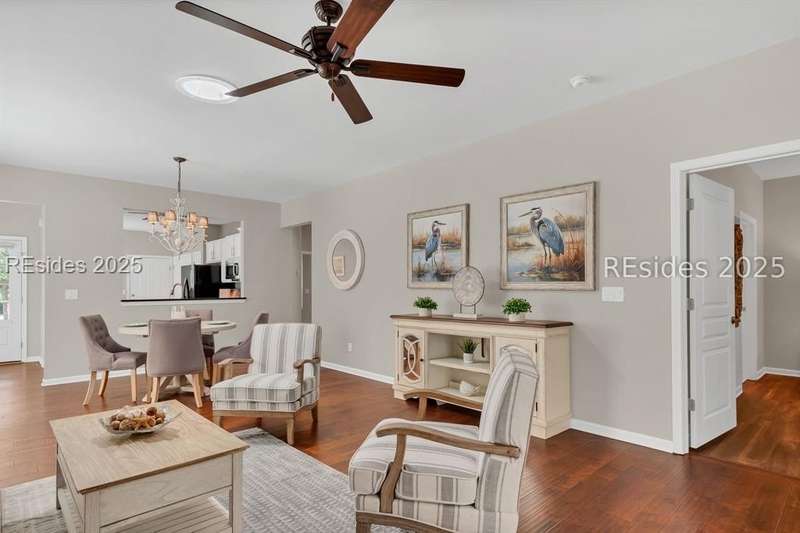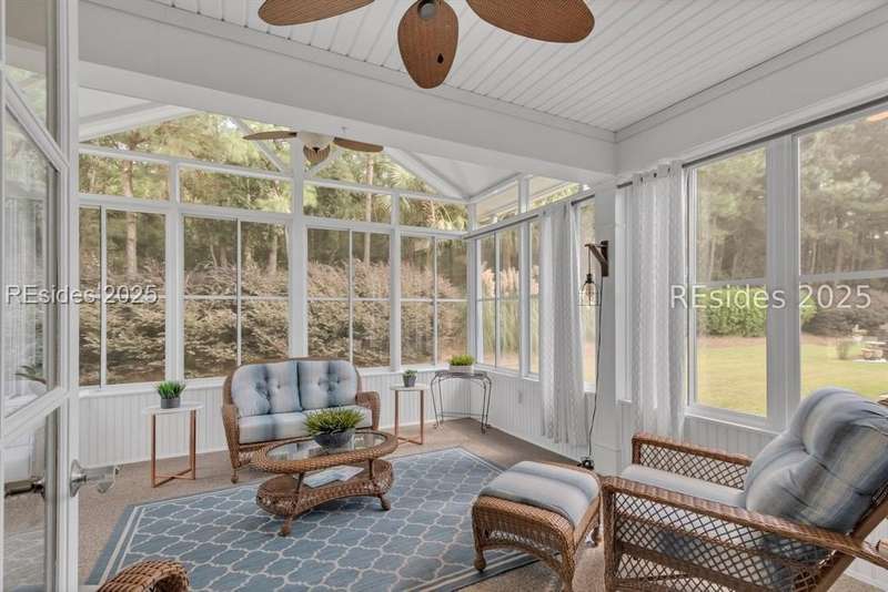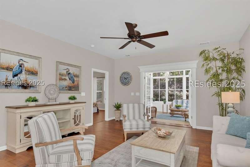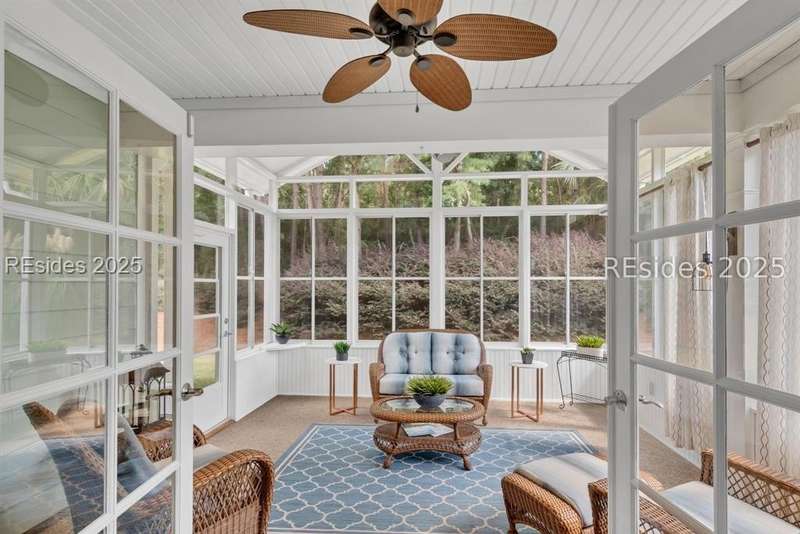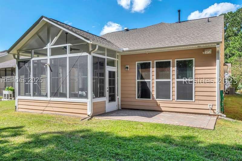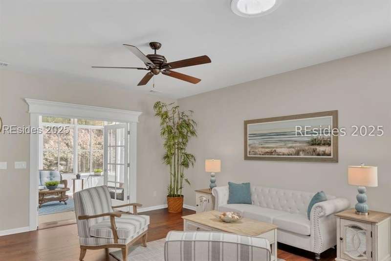 Enjoy the wooded privacy of this expanded Gray Myst model from the sunny, climate-controlled 4 seasons room. From there, step out onto the brick paver patio. Quiet, peaceful, light and bright in great location. 2 Bedrooms, 2 Baths PLUS Office/den (or 3rd Bedroom with storage closet). Many upgrades include rich hardwood floors in living room, new LVP flooring in bedrooms, kitchen and baths. White cabinets and granite countertops in kitchen. New microwave, dishwasher, washer and dryer. Freshly Painted, New Roof 2023, New Furnace 2025. Extended 2 car garage with new insulated hurricane resistent belt driven garage door. Generous storage in attic. Move in ready! Start living the Sun City lifestyle today!!!