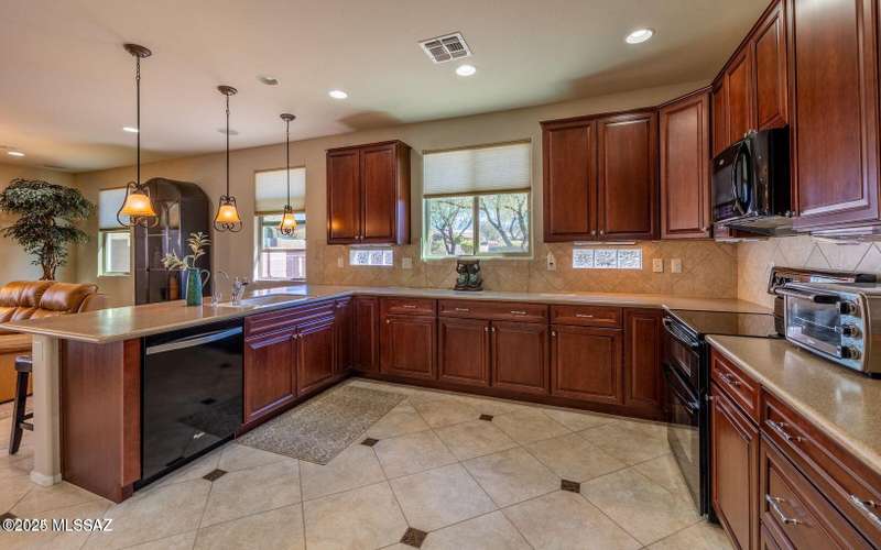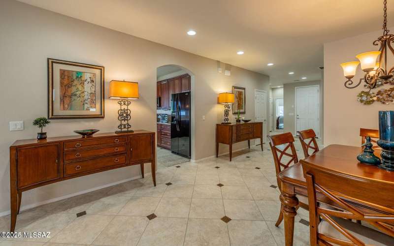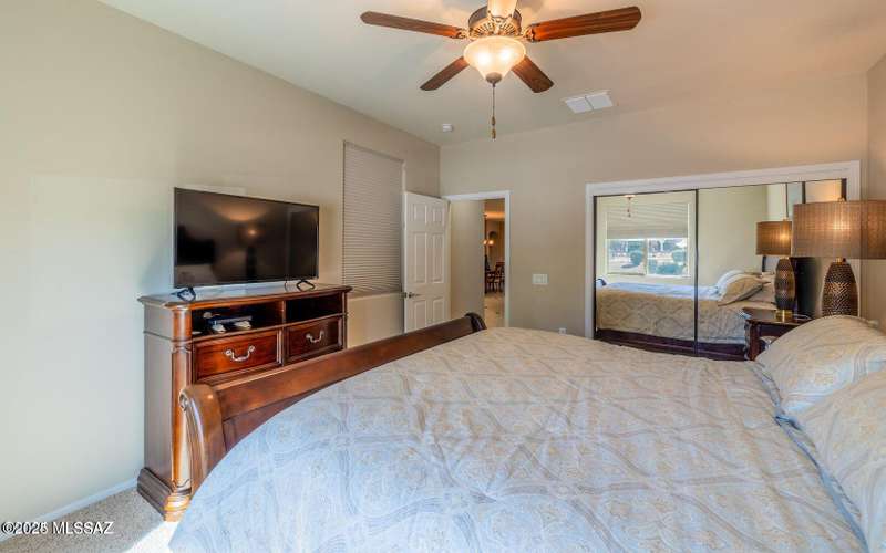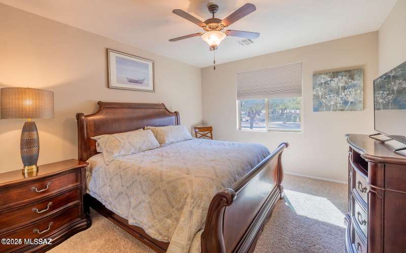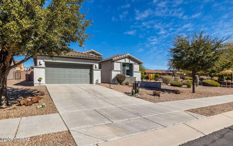 This Del Webb 55+ community home encapsulates the essence of a fulfilling lifestyle, offering a perfect blend of comfort, style and community engagement. Custom built with beautiful flooring and custom window coverings, 8 Owned Solar Panels, cherry stained cabinetry, 2 spacious bedrooms, Large Den (could be 3rd bedroom), 9' ceilings, 4'extended garage with epoxy flooring, large laundry room w/ sink and storage, full length covered patio, and sits next to an open park area that is common area with views of the mountains. This is one of the most popular floor plans called the San Pedro in this beautiful gated community with many amenities to keep you active!
