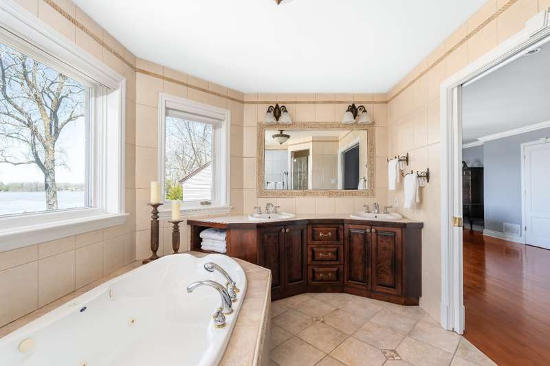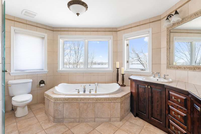 Pristine waterfront property exquisitely crafted and built. Sitting on over 17,000 sqft. of land with over 80 ft. of direct navigable access to Riviere des Prairies. A watersport enthusiast paradise! Spacious 5 bed, 3.5 bath residence, boasting a generous crosshall floorplan accented by a sweeping circular staircase. Incredible primary bedroom designed as a spa-like retreat, with opulent ensuite, walk-in closet, gas fireplace and views overlooking the sprawling backyard and stunning water vistas. An opportunity not to be missed in a highly sought after corner of the West Island. See addendum for more info.