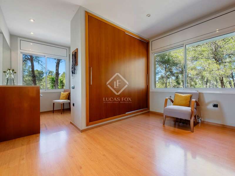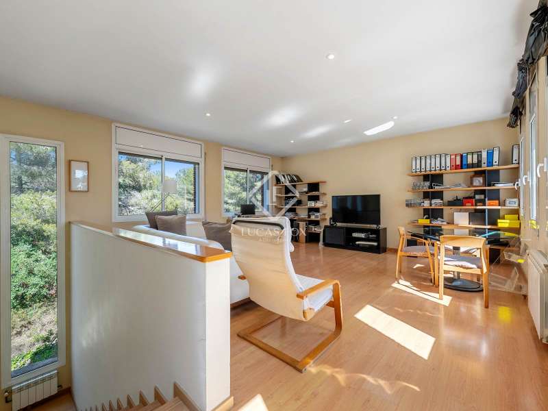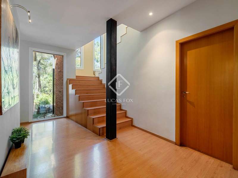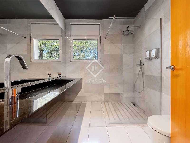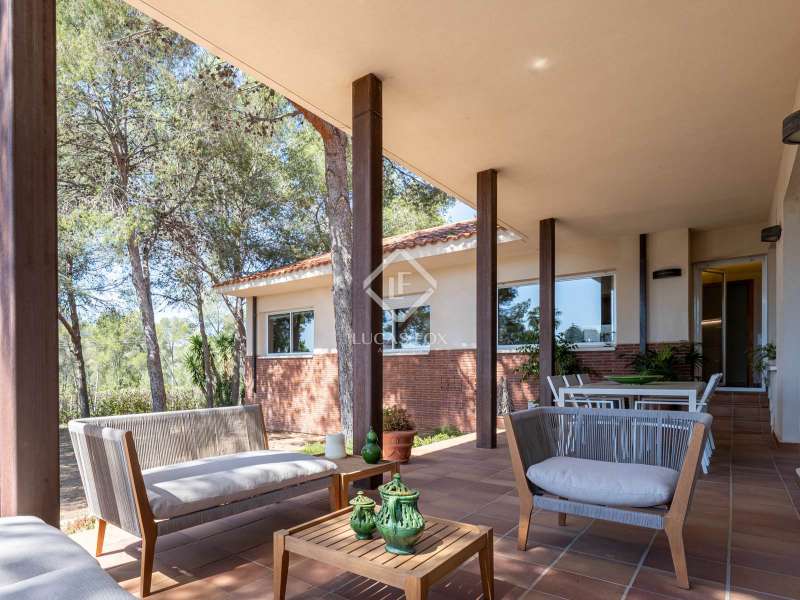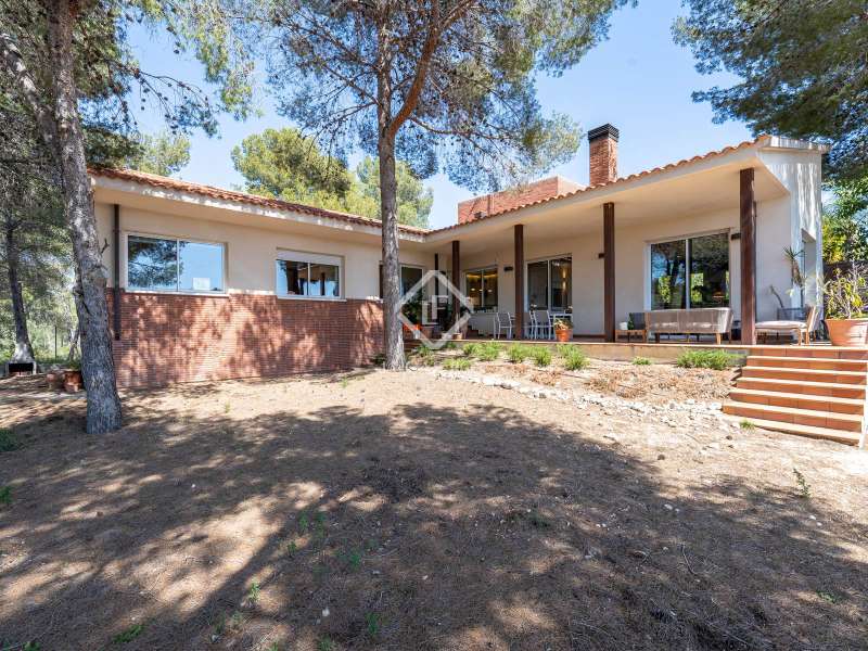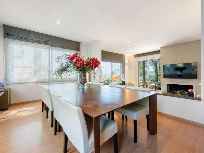 Great detached house of 336m2 and built, fundamentally, on a single floor. The main rooms; 5 bedrooms and 3 bathrooms, a separate living living room and dining room , a large kitchen and a laundry room or garage, are distributed on a single floor. A large study or multipurpose room is located on the upper floor . The construction sits on a plot of more than 1,100 m2 with a wild garden and, on the side, a wonderful natural forest, forming part of the views to be contemplated and that invite calm and rest. Its design was commissioned for the permanent residence of a large family. Contemporary materials and simple lines in exposed stone were used to dress the facades. As we enter and head towards the main door or the garage, we are accompanied by solid cobblestones, traditional Catalan billet walls and a beautiful terrace framed with repetitive rectangular windows. Once inside, the hall distributes the different areas of the house. The first and day part has a cozy independent dining room , generous and semi-open on one side to the living area. Located on a different level and with a perfect integrated wood-burning fireplace as the protagonist. The large windows connect with the exterior of the terrace and the garden. Both spaces have abundant natural light as they are arranged on three facades and a multitude of windows. The kitchen, spacious and modern, arranged with a central island and office. From the hall and leaving the day area, a hallway leads to the night area. It has 4 bedrooms and 3 bathrooms, one in suite format with a dressing room, as well as another utility room room. All rooms have fixed wardrobes arranged towards the exterior of the garden. We return to the hall and it has a direct door to the garage, suitable for two vehicles and for storage. Upstairs, surprisingly, is a large studio or multipurpose room that replicates the multiple rectangular windows, providing luminosity and ultimately a unique space. The house is surrounded by nature in a quiet environment and is waiting for its new owner to add a swimming pool. Request a visit and be surprised by its functionality and simplicity.