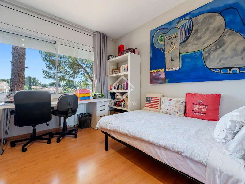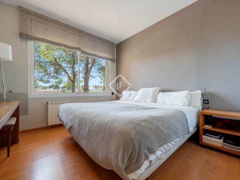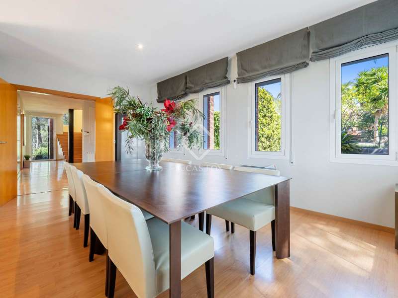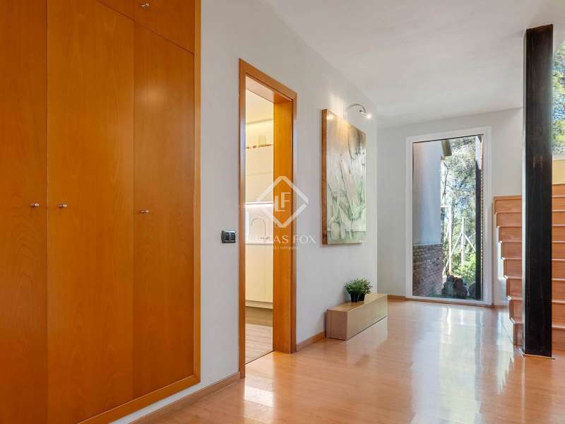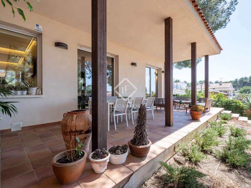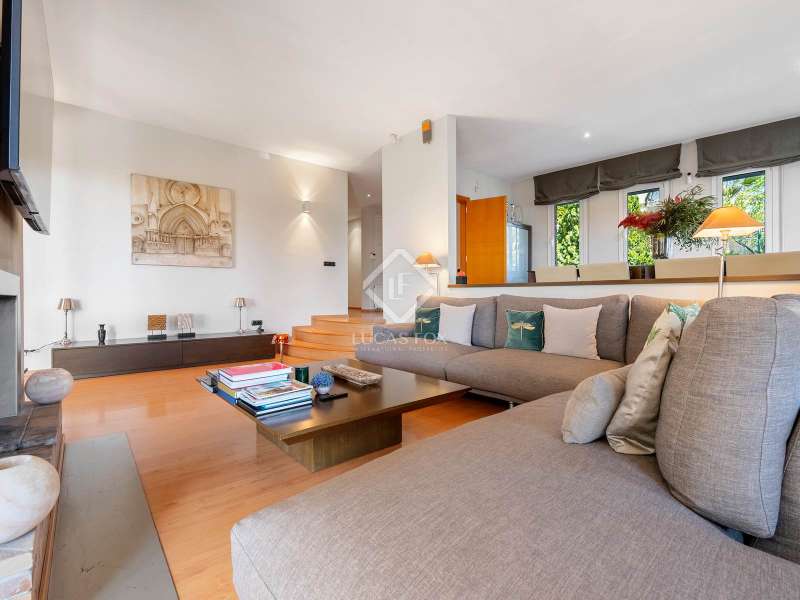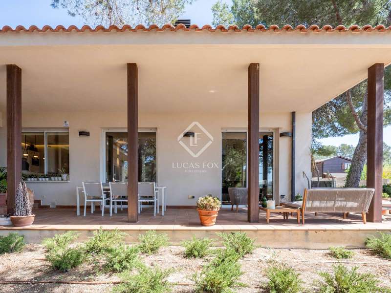 Great detached house of 336m2 and built, fundamentally, on a single floor. The main rooms; 5 bedrooms and 3 bathrooms, a separate living living room and dining room , a large kitchen and a laundry room or garage, are distributed on a single floor. A large study or multipurpose room is located on the upper floor . The construction sits on a plot of more than 1,100 m2 with a wild garden and, on the side, a wonderful natural forest, forming part of the views to be contemplated and that invite calm and rest. Its design was commissioned for the permanent residence of a large family. Contemporary materials and simple lines in exposed stone were used to dress the facades. As we enter and head towards the main door or the garage, we are accompanied by solid cobblestones, traditional Catalan billet walls and a beautiful terrace framed with repetitive rectangular windows. Once inside, the hall distributes the different areas of the house. The first and day part has a cozy independent dining room , generous and semi-open on one side to the living area. Located on a different level and with a perfect integrated wood-burning fireplace as the protagonist. The large windows connect with the exterior of the terrace and the garden. Both spaces have abundant natural light as they are arranged on three facades and a multitude of windows. The kitchen, spacious and modern, arranged with a central island and office. From the hall and leaving the day area, a hallway leads to the night area. It has 4 bedrooms and 3 bathrooms, one in suite format with a dressing room, as well as another utility room room. All rooms have fixed wardrobes arranged towards the exterior of the garden. We return to the hall and it has a direct door to the garage, suitable for two vehicles and for storage. Upstairs, surprisingly, is a large studio or multipurpose room that replicates the multiple rectangular windows, providing luminosity and ultimately a unique space. The house is surrounded by nature in a quiet environment and is waiting for its new owner to add a swimming pool. Request a visit and be surprised by its functionality and simplicity.