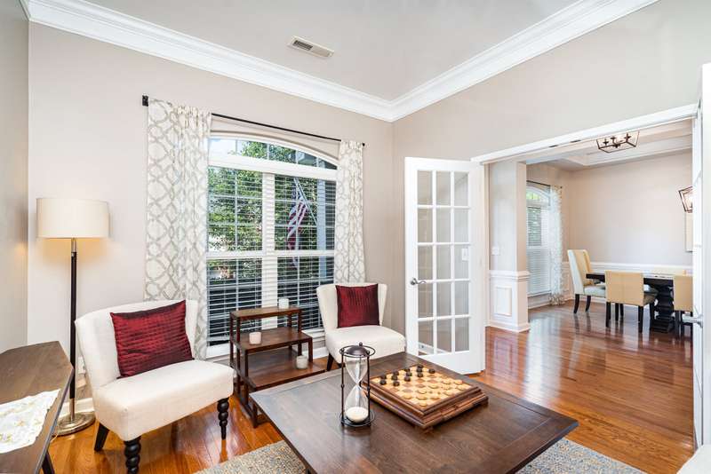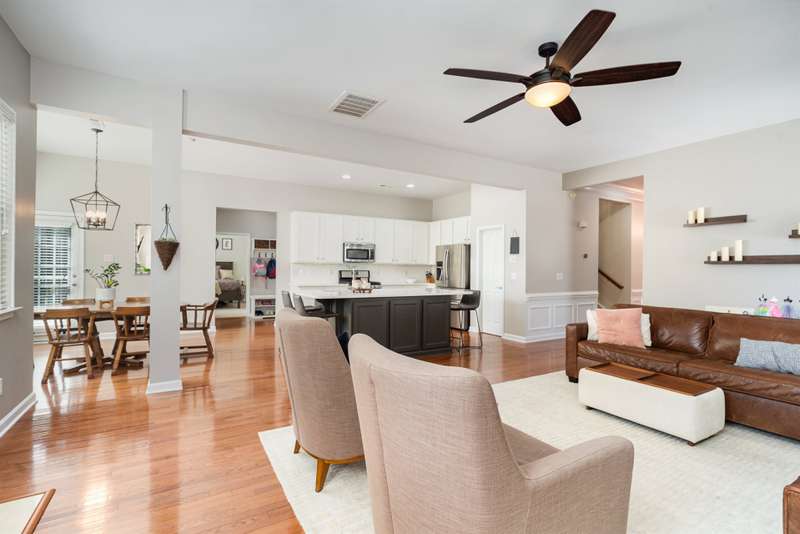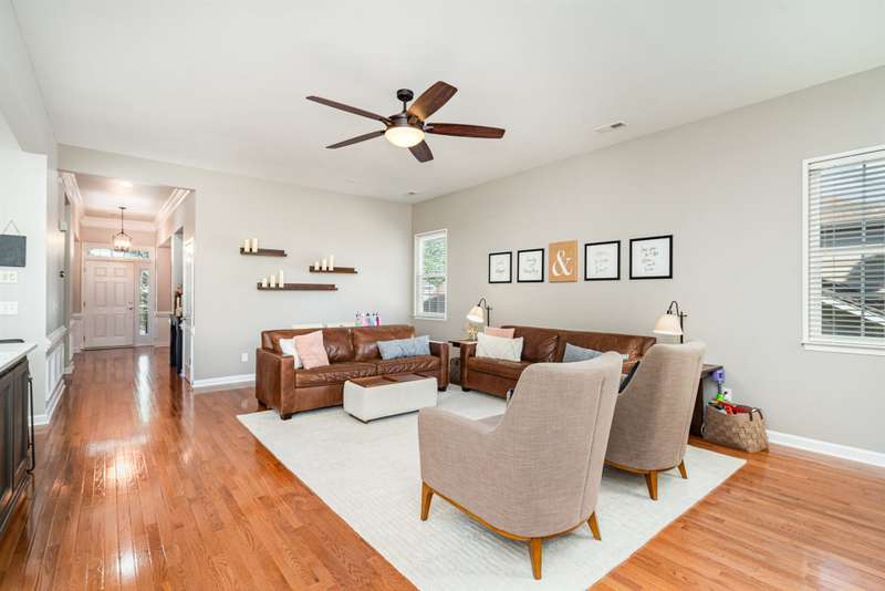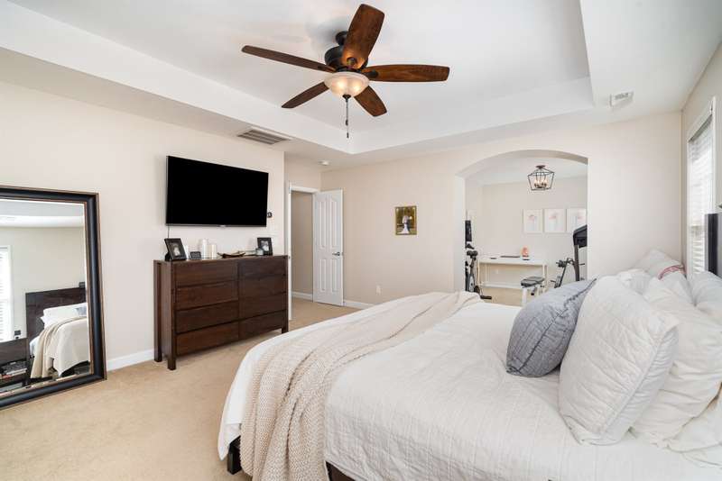 ASSUMABLE VA LOAN at approx. $165,000 with 2.75% interest rate offers a great opportunity for qualified buyers - subject to lender approval. Stunning 5 bedroom, 3 bath smart home in Highland Creek featuring a bonus room, office, and private sitting area off the primary suite. Upgraded flooring, designer lighting, and 10' ceilings create an open and welcoming feel. The spacious kitchen and pantry are ideal for entertaining and are complemented by a formal dining room, drop zone off garage, and full guest bedroom and bath on the main level. Upstairs bonus room is equipped with a surround sound system valued at approx. $5,000. Primary suite offers his-and-hers closets, raised vanities, and a relaxing sitting area. Outdoor features include a newly redone composite deck, fenced low-maintenance yard with irrigation, and stone paver patio. Located in a golf course community with pools, tennis courts, trails, and clubhouse amenities.