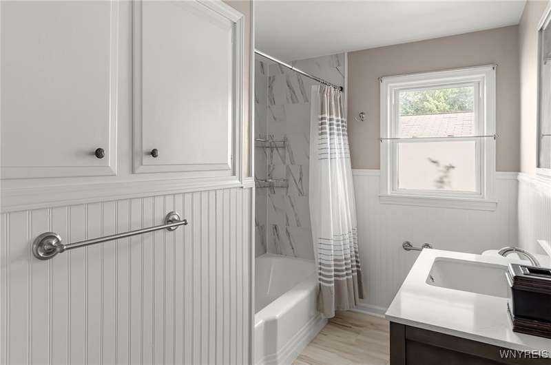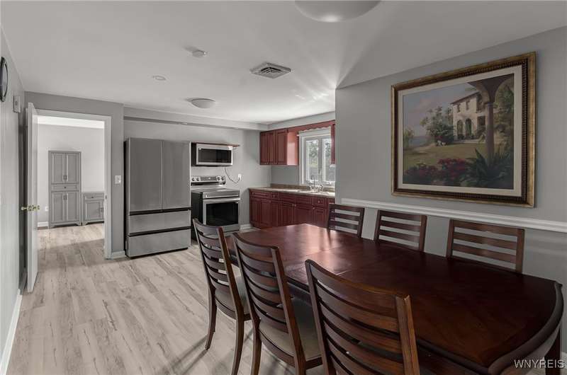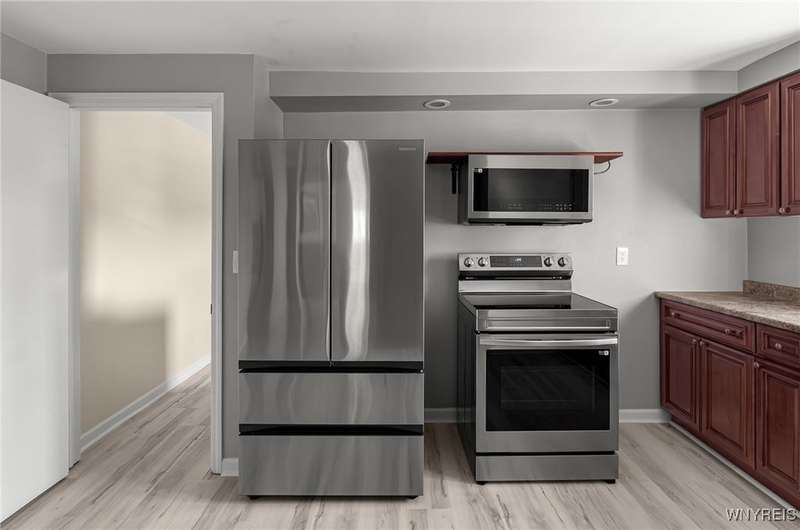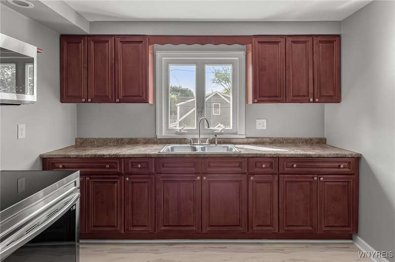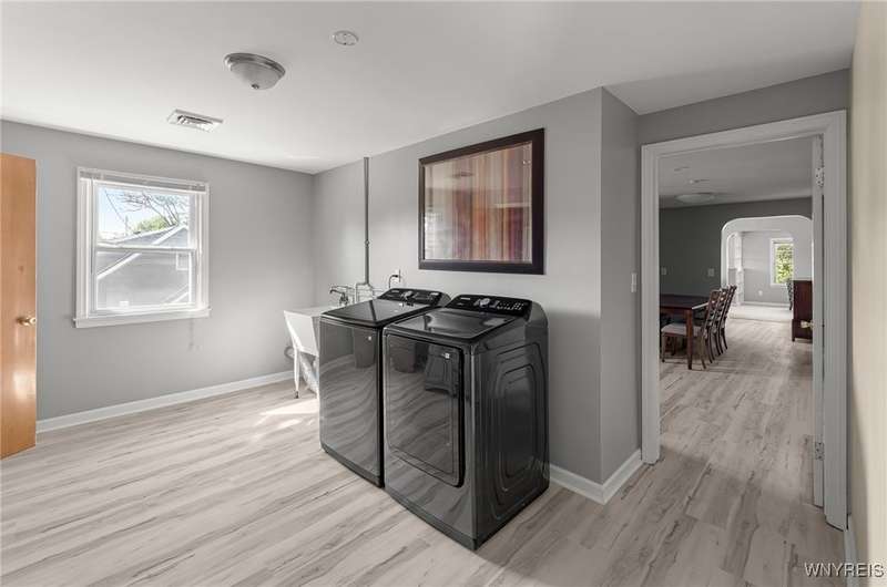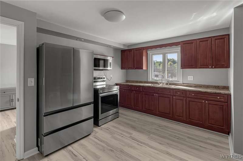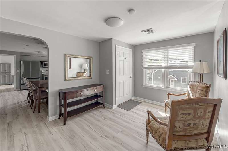 Step into refined living with this 2-bedroom, 1-bath upper apartment in North Tonawanda. Offering 1,750 Square feet of beautifully updated space, this fully furnished residence is designed for those who appreciate exclusive, high-end living - Enter through your private entrance with the convenience of two off street parking spaces. The expansive kitchen has been fully updated, complete with stainless steel refrigerator, stove, microwave and plenty of cabinetry. The remodeled bathroom and cedar walk-in closet elevate the everyday experience. Additional highlights include: fully furnished - move in ready, In-unit washer & dryer, Luxury laminate flooring throughout, updated window treatments and fresh modern paint. High-end finishes for a polished look and feel. Enjoy a lifestyle of comfort in a pristine space designed for convenience and sophistication. Available immediately. 1 year lease, No Pets. Application through Rent Spree.