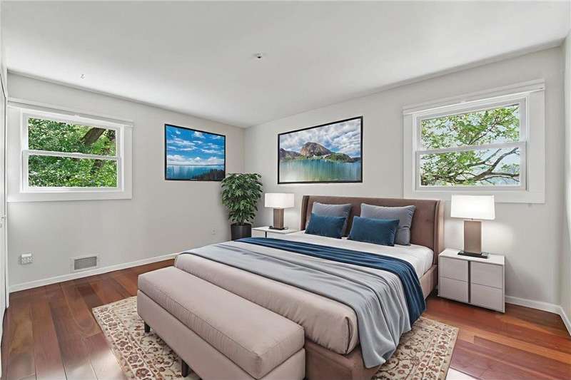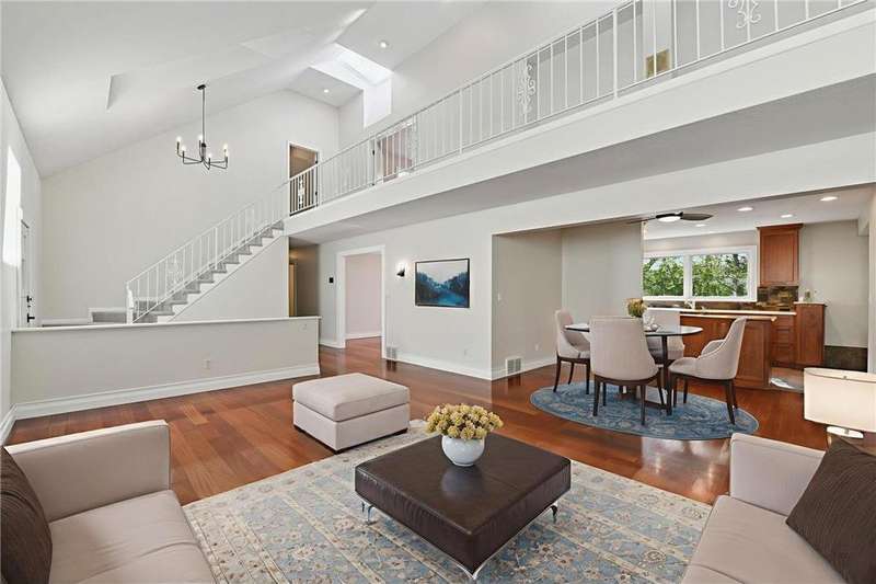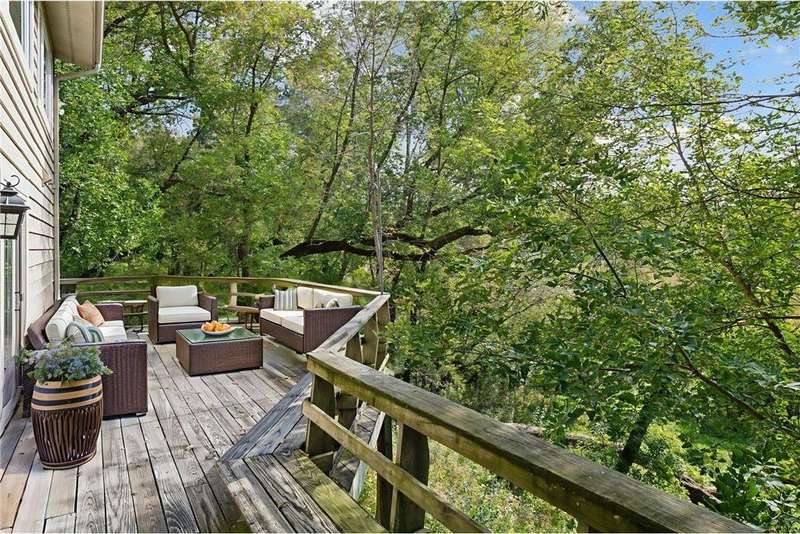 First time available in over 40 years! This impressive home blends warmth, character, and versatility with main level living, as well as serene tree-top and nature views. The main level showcases a dramatic vaulted ceiling, cherry hardwood floors, and an updated dron Geo atheri kitchen with rich cherry cabinetry, and a picture window framing the scenic backdrop. Generous gathering spaces include both living and family rooms, a cozy wood-burning fireplace, and access to an expansive deck-perfect for entertaining or quiet relaxation. Three bedrooms, including one of two primary suites, complete the main level. Upstairs, discover a spacious second primary suite, 5th bedroom, flex room, sitting area, and loft-ideal for family, guests, or creative spaces. The unfinished walkout lower level, with 10-foot ceilings, fireplace, and bath rough-in, provides an excellent opportunity to add value and expand your living space. Nestled on a beautiful 1.35-acre setting surrounded by mature trees, wildflowers, and natural grasses, this property offers room to create a manicured yard, play area, a,or garden oasis. Added bonus of a heated driveway and lower level garage for your lawn tools and toys. Perfectly positioned within the sought-after Minnetonka School District with convenient access to schools, everyday amenities, and commuter. One-year HSA home warranty included.