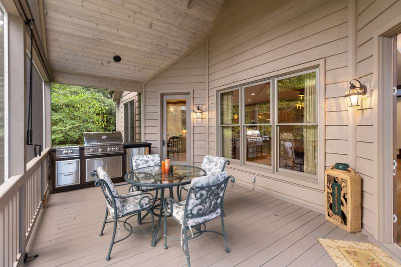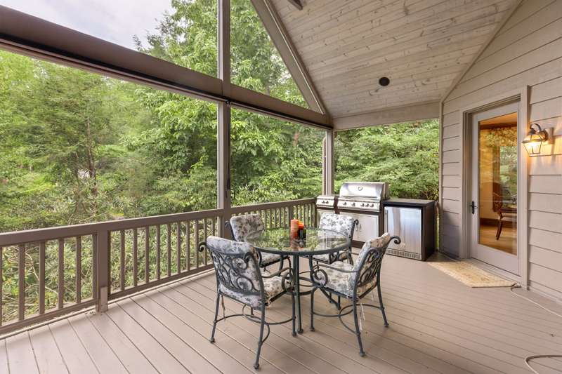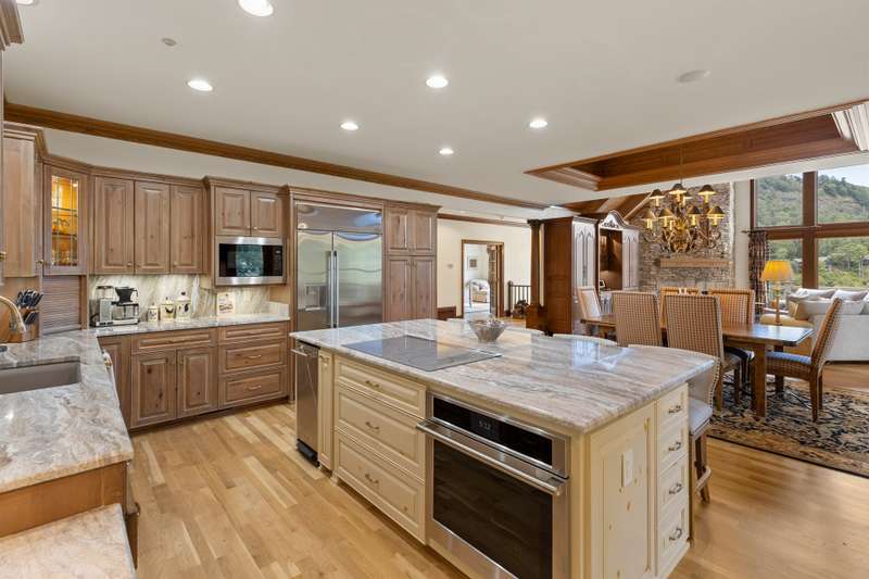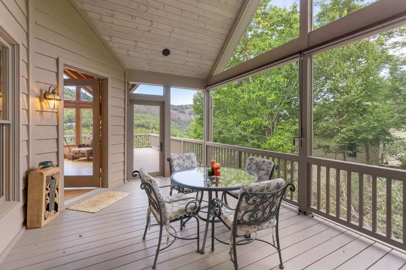 This is the Panoramic BIG VIEW! Prepare to be captivated by sweeping, unobstructed views of iconic Whiteside Mountain from this stunning Highlands Falls Falcon Ridge residence, a home so remarkable it has been featured twice in Architectural Digest. Designed with generous proportions and effortless flow, the home offers main-level living with the primary suite conveniently located on the entry level. Architectural details abound, highlighted by custom wormy chestnut and oak features throughout, including an impressive 3? solid wormy chestnut entry door. The primary suite commands breathtaking mountain views and sunrises and boasts a lavish Italian marble bath with soaking tub, oversized shower, dual lighted mirrors, hidden lighted vanity, Kohler fixtures, custom walk-in closets, and a private wet bar with sink and mini-fridge. The open-concept living, dining, and kitchen spaces flow seamlessly onto a screened porch with a fully outfitted grilling station featuring a Blaze grill?an entertainer's dream with Whiteside Mountain as the backdrop. The main level also conveniently includes a guest bedroom, full bath, office/den with custom glass paned wormy chestnut and oak door, and a full laundry room with sink. The lower level provides for guest privacy with a second living area with fireplace, private deck, two spacious en-suite bedrooms, powder room, bonus/flex room with gym/playroom potential, and a secondary laundry area. Recent upgrades are extensive, including a remodeled kitchen, refinished hardwood floors, 27 new windows, new roof, gutters with guards, encapsulated crawlspace, repaved driveway with focal pavers, updated HVAC systems, new water heaters with recirculation pump, blown-in attic insulation, new gas logs in main level fireplace, and view clearing to fully showcase dramatic views of Whiteside Mountain, Wildcat Ridge, and Cullasaja Club beyond. A drainage system beneath the upper deck ensures protection for the lower-level outdoor living area. Peace of mind comes with a 500-gallon fresh water reserve tank and a whole-house generator. A two-car garage with workshop, along with a welcoming exterior accented by a serene water feature, completes this mountain sanctuary. This Highlands Falls home is more than a residence?it is a retreat of timeless architecture, meticulous updates, and awe-inspiring views. Membership to Highlands Falls CC is not mandatory but the amenities are tremendous and the club is vibrant. See Attached Matterport for tour.