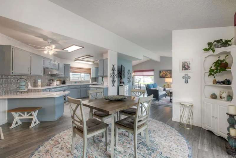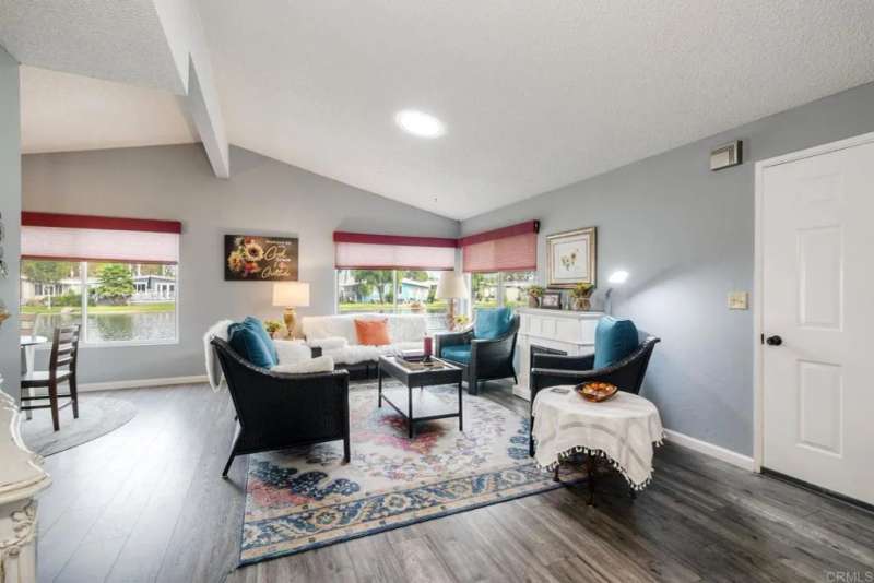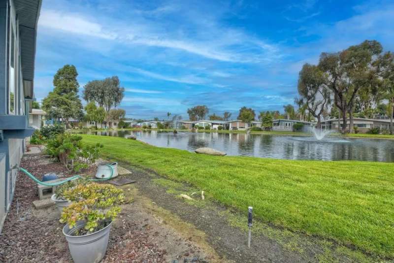 Lake front home has stunning lake and green belt view. There is a Large deck for relaxing with water view. Features an open floor plan that entertains a feeling that you are in a resort. Large picture windows. Kitchen opens to a dining room that leads to a large living space. Bathrooms have been updated and home throughout is same, with convenience and peaceful living space. Updated paint and wonderful decor thru out. One year old washer and dryer This is a must see in a senior park called Laguna Vista Mobile Home Estates where nature abounds . A gated community located close to freeway, shopping. Beach is to the west by freeway. The complex has a parklike setting with lakes thruout. Shed in Carport and pleasant sitting arrangement.