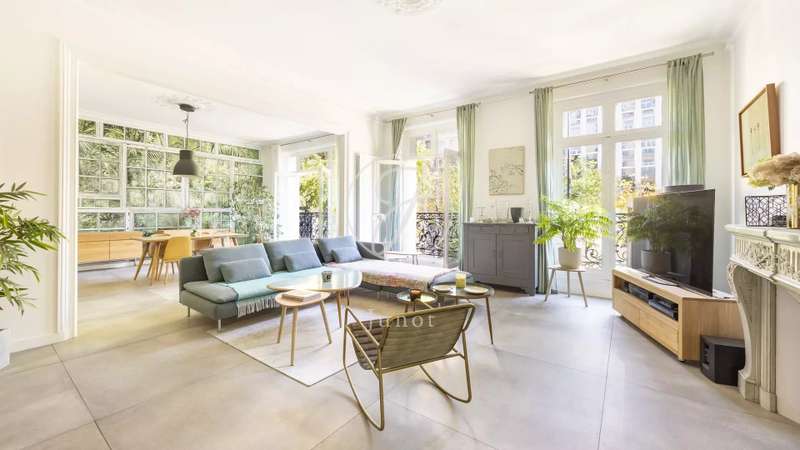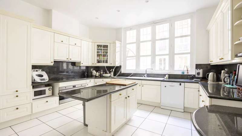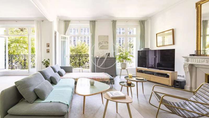 In a sought-after area, in the heart of an elegant Haussmann building, superb 201.60sqm loi Carrez family apartment on the second floor with elevator. Its star-shaped layout features a vast double living-dining room with 3.27m high ceilings, a master suite with en suite bathroom and dressing room, three other spacious bedrooms, a fitted kitchen/diner, a shower room, a laundry room and two guest toilets. Exceptionally spacious and bright. In excellent condition, it boasts tree-lined views and has retained all its original charm. Live-in janitor.